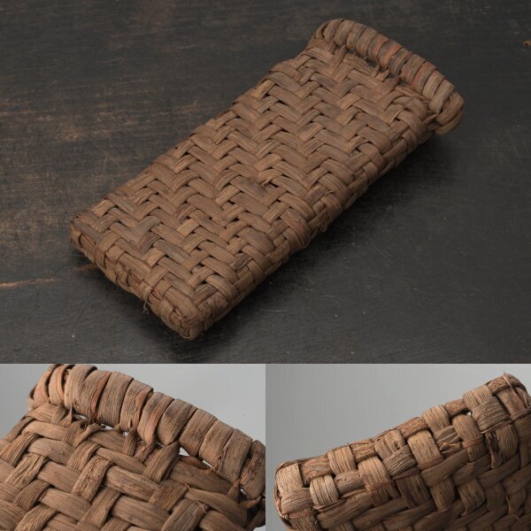 | 山葡萄鉈鞘。箱無。 現状、掛け金具や紐等はありません。 掛け花入としてお使いの場合は、金具や紐などを取り付けてください。 サイズは約11.5x22cm。 傷・直しありません。 状態・詳細は、画像でご確認お願いいたします。 |
