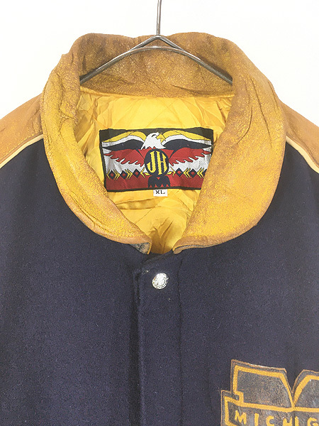 厚手メルトンウール・牛革(スエードカウレザー)袖・中綿入りキルティングライナー。