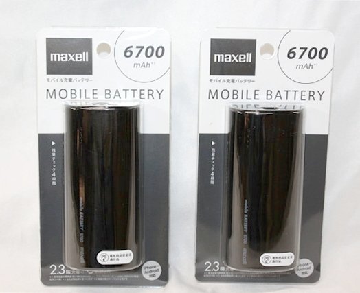 未使用 maxell 2個セット モバイル充電バッテリー MPC-C6700PBK ブラック 6700mAh スマホ 充電器 iPhone Andoroid PSE適合品 マクセル