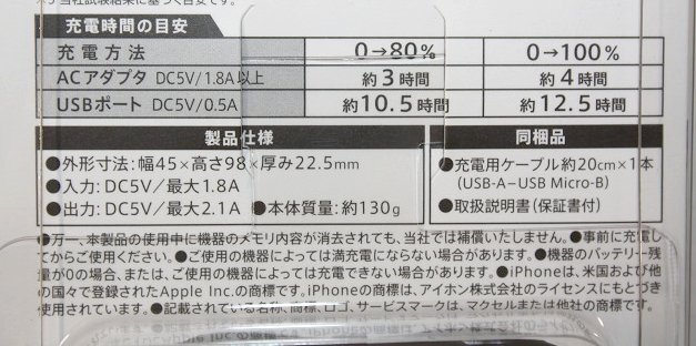 ●同梱品  充電用ケーブル(USB-A - USB Micro B 約20cm)、取扱説明書