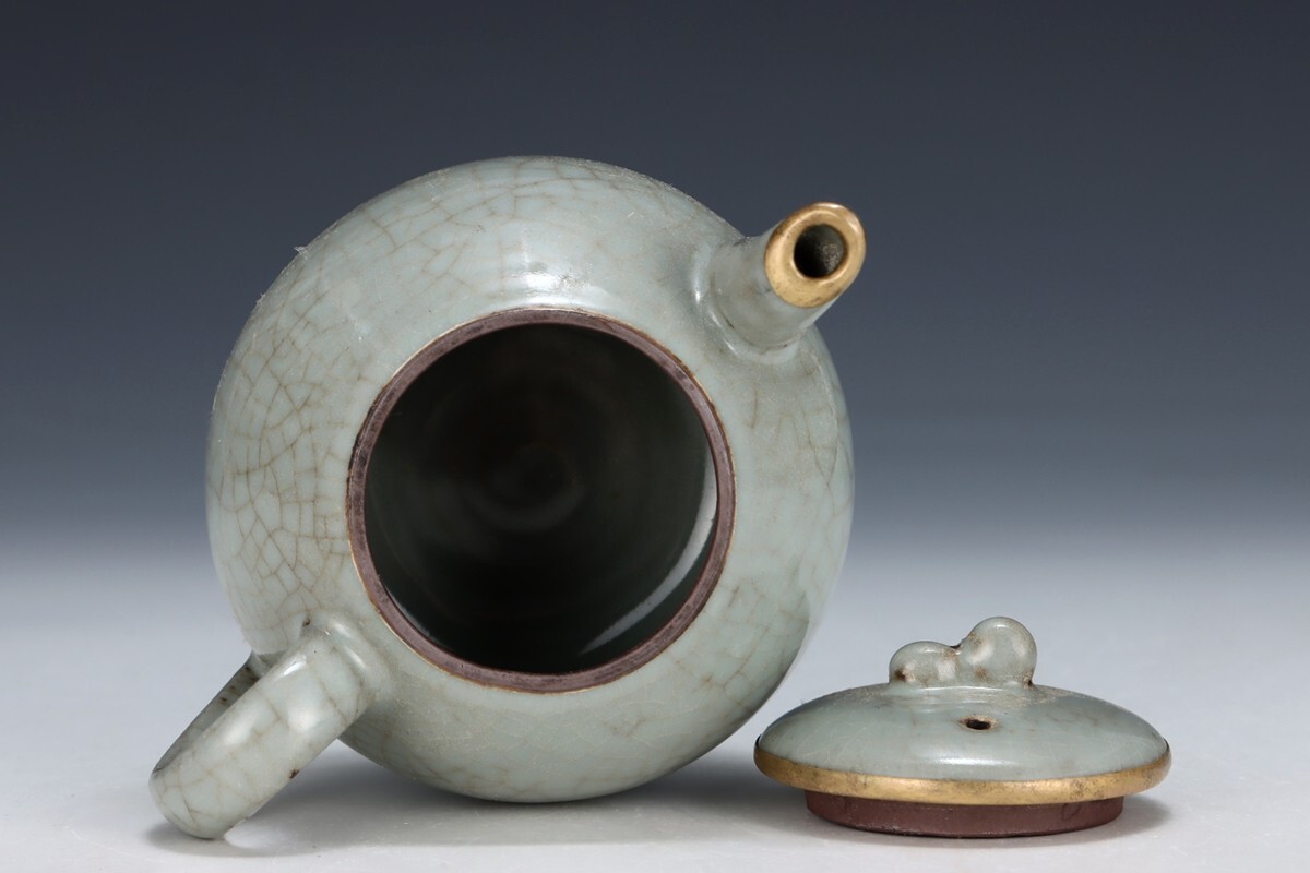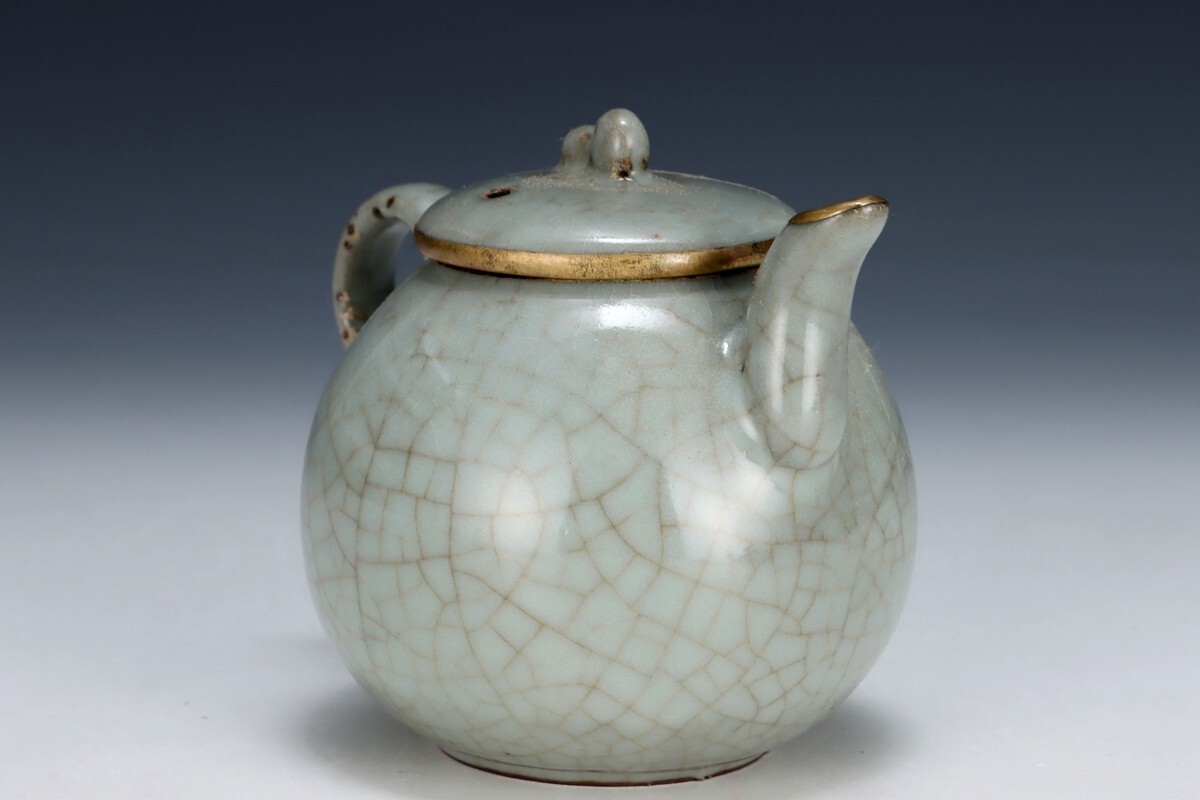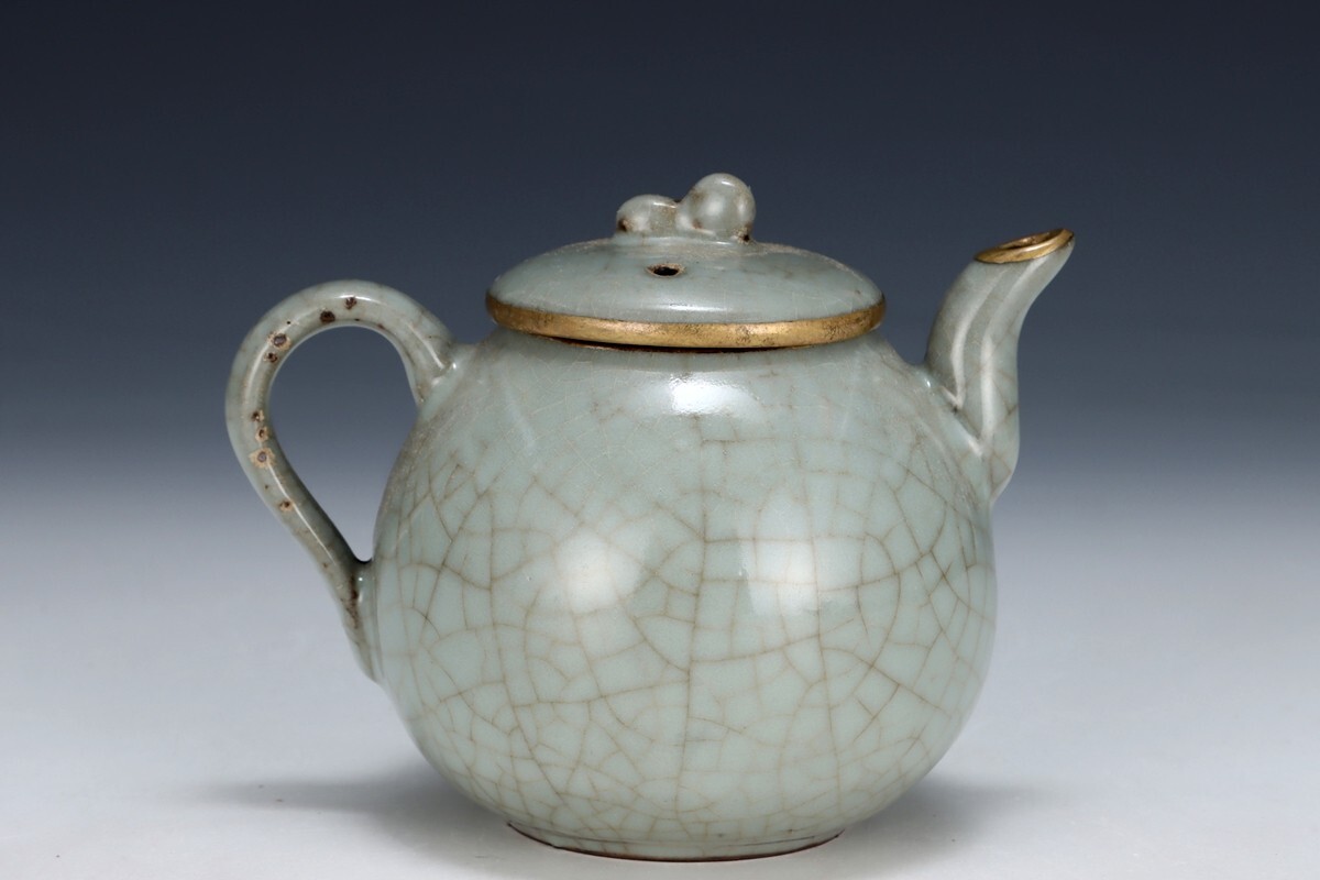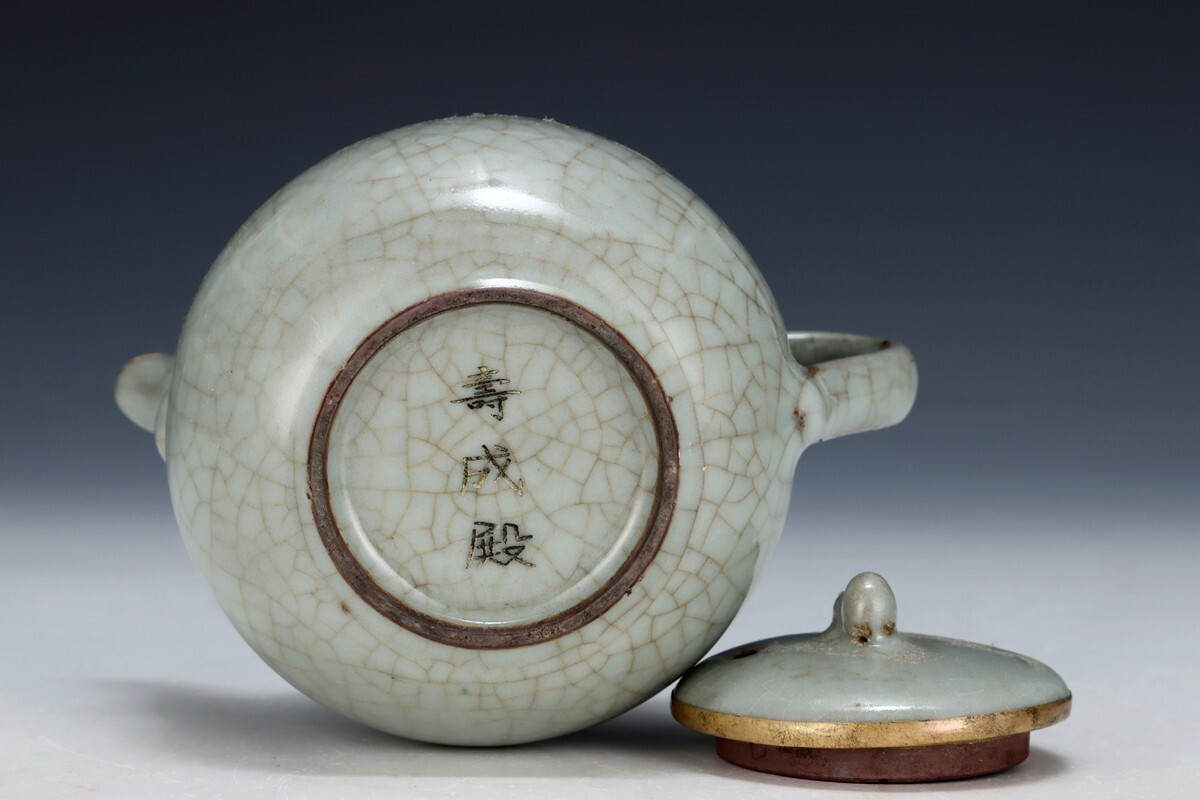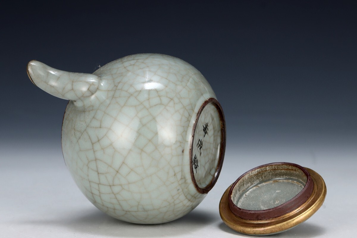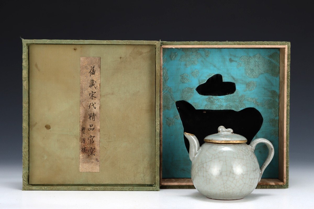「宋 官窯 陶磁器 灰青釉 壺」染付 置物 擺件 古賞物 中国古美術 旧蔵出