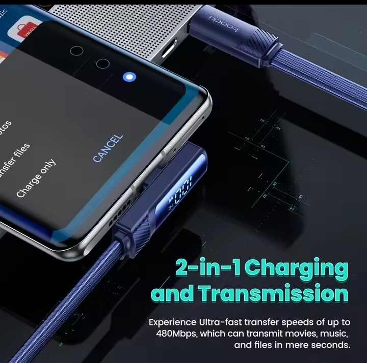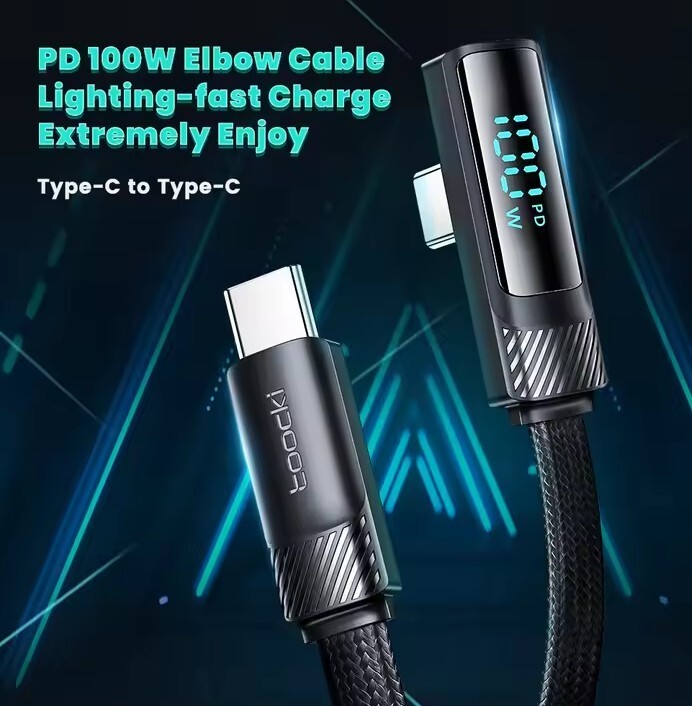 toocki PD 100W Type-C to C 90° ディスプレイ ケーブル 2m ブラック