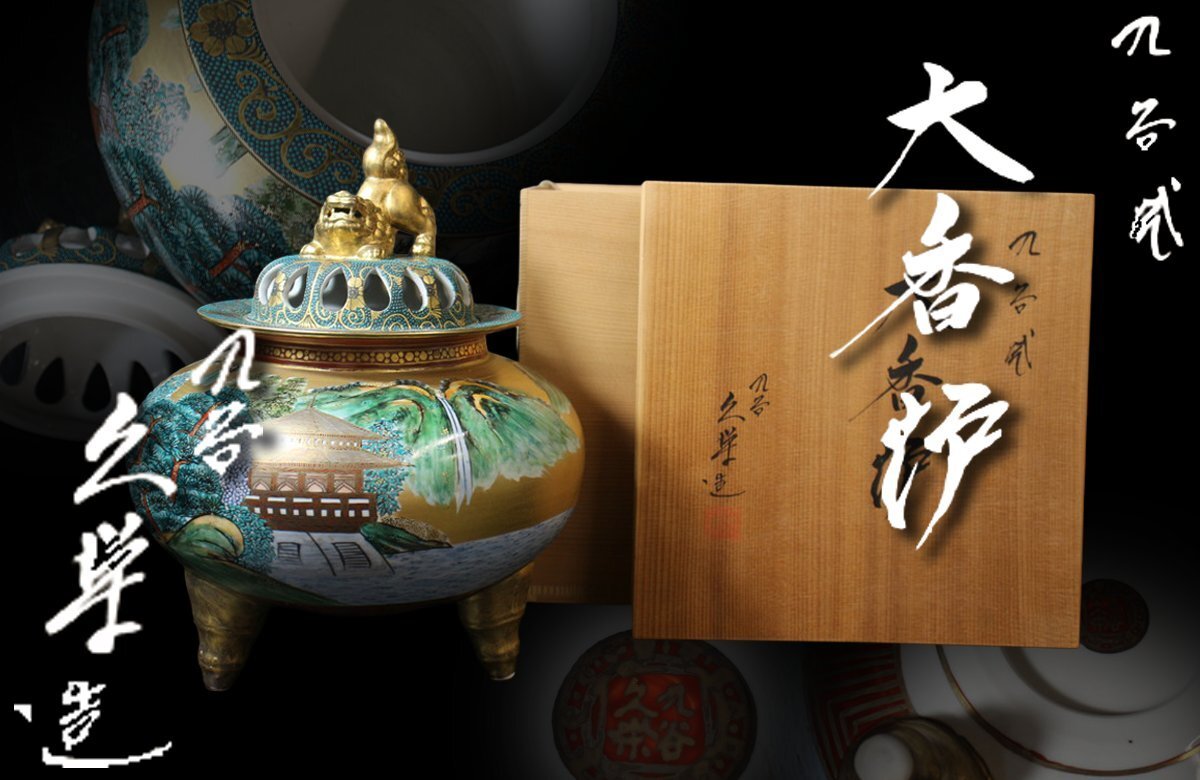 商品名 | 【江】九谷久栄造 青粒本金楼閣山水文獅子摘三足大香炉 高さ30㎝ 在銘 共箱 古美術品(茶道具香道具仏具)X1883 CTDBgapo |