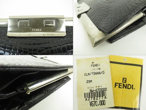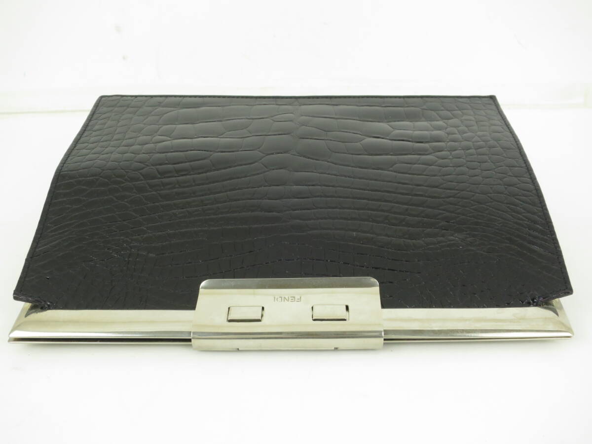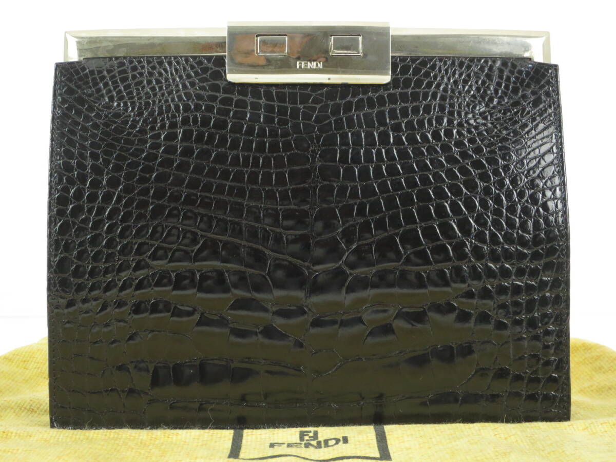FENDI フェンディ 高級皮革 クロコダイル ワニ革 クラッチバッグ セカンドバッグ がま口 お洒落な ブラック