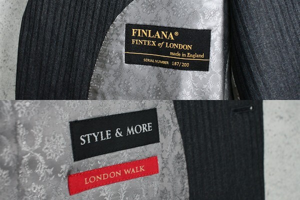 新品 オンワード樫山 STYLE&MORE 高級オーダーメイド 秋冬 日本製 英国 幻のFINTEX of LONDON スリーピース スーツA96/A6/L/濃灰/33.8万円