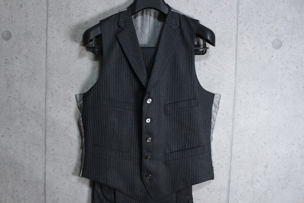 店頭のトルソーディスプレイに用のフラッグシップアイテムになり、1点物になります。こちらのスーツは既製品としては販売されておらず、極少量しか生産されない貴重な逸品になります。