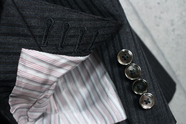 仕様:総裏仕立て、二つ釦、センターベント、ワンタック、AMFステッチ、本切羽、お台場仕立て