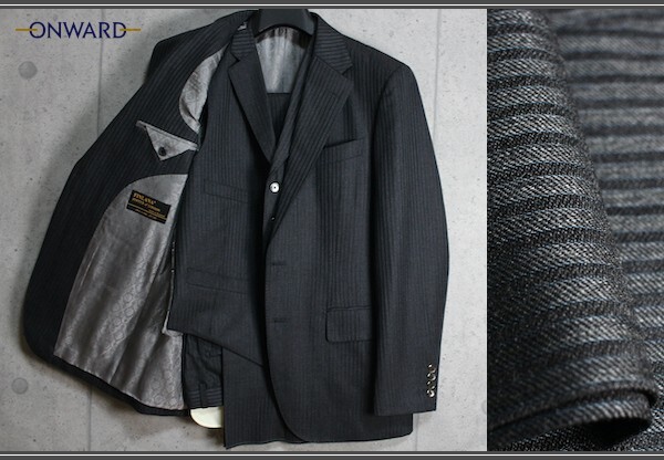 オンワード樫山の(ONWARD)の高級オーダーメイドSTYLE&MOREの型見本 日本製 英国 幻のFINTEX of LONDON スリーピース スーツ。