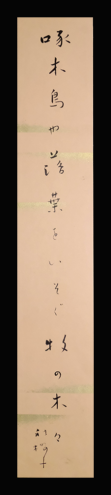 【翻字】 「啄木鳥や落葉をいそぐ牧の木々 秋桜子」 紙本(金霞引洒落柿地)肉筆未装短冊1点 作品寸法:36.2cm x 6.0cm 商品状態:良好。実際の品を画像にてお確かめ下さい。 ★本品は印刷ではなく肉筆保証の作品です。 ★本品は真作保証の作品です。 水原秋桜子(みずはら-しゅうおうし) 1892-1981。大正-昭和時代の俳人。明治25年10月9日生まれ。高浜虚子に師事,「ホトトギス」で山口誓子らと4S時代をきずく。昭和6年主宰誌「馬酔木(あしび)」で虚子の写生観を批判,新興俳句運動の口火をきった。39年芸術院賞,41年芸術院会員。産婦人科医で,昭和医専の教授もつとめた。昭和56年7月17日死去。88歳。東京出身。東京帝大卒。本名は豊。句集に「葛飾(かつしか)」など。 出典:講談社『デジタル版 日本人名大辞典+Plus』 |