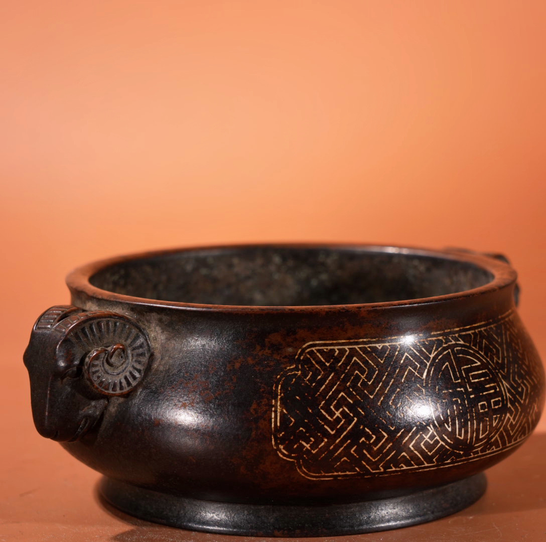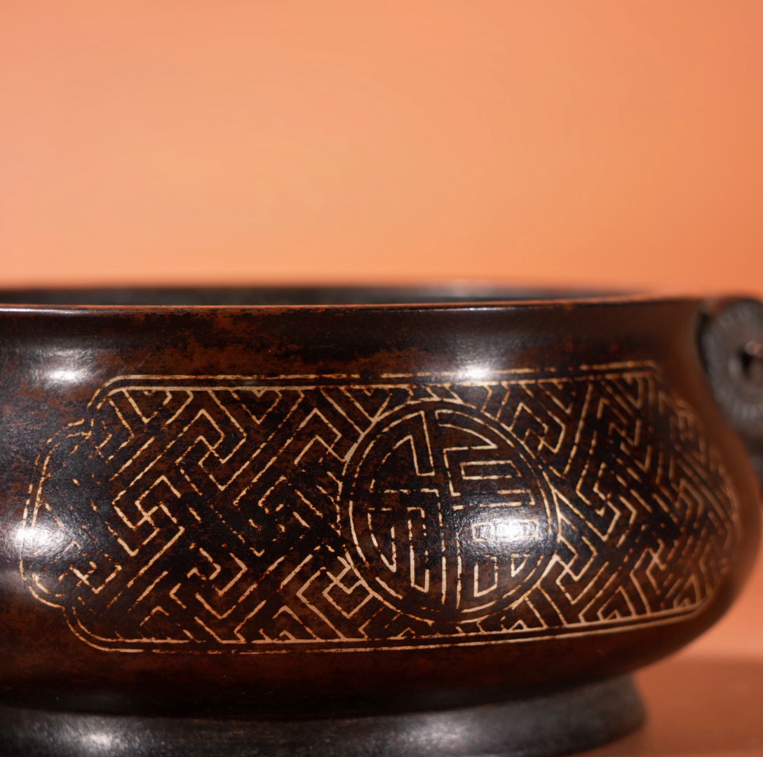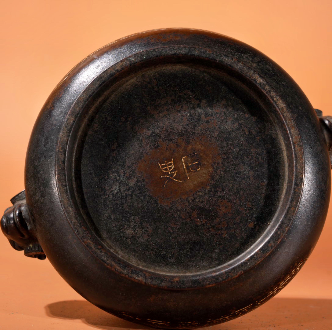 【超珍館蔵】紫銅製 錯銀絲 熏香炉 置物 賞物 古賞物 古董品 古美術品 時代物 旧家蔵出 稀少珍蔵品
