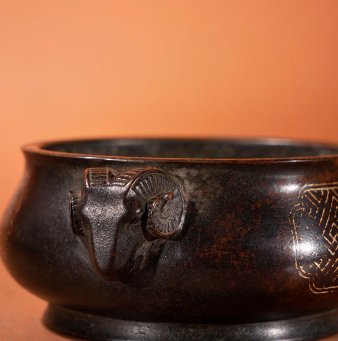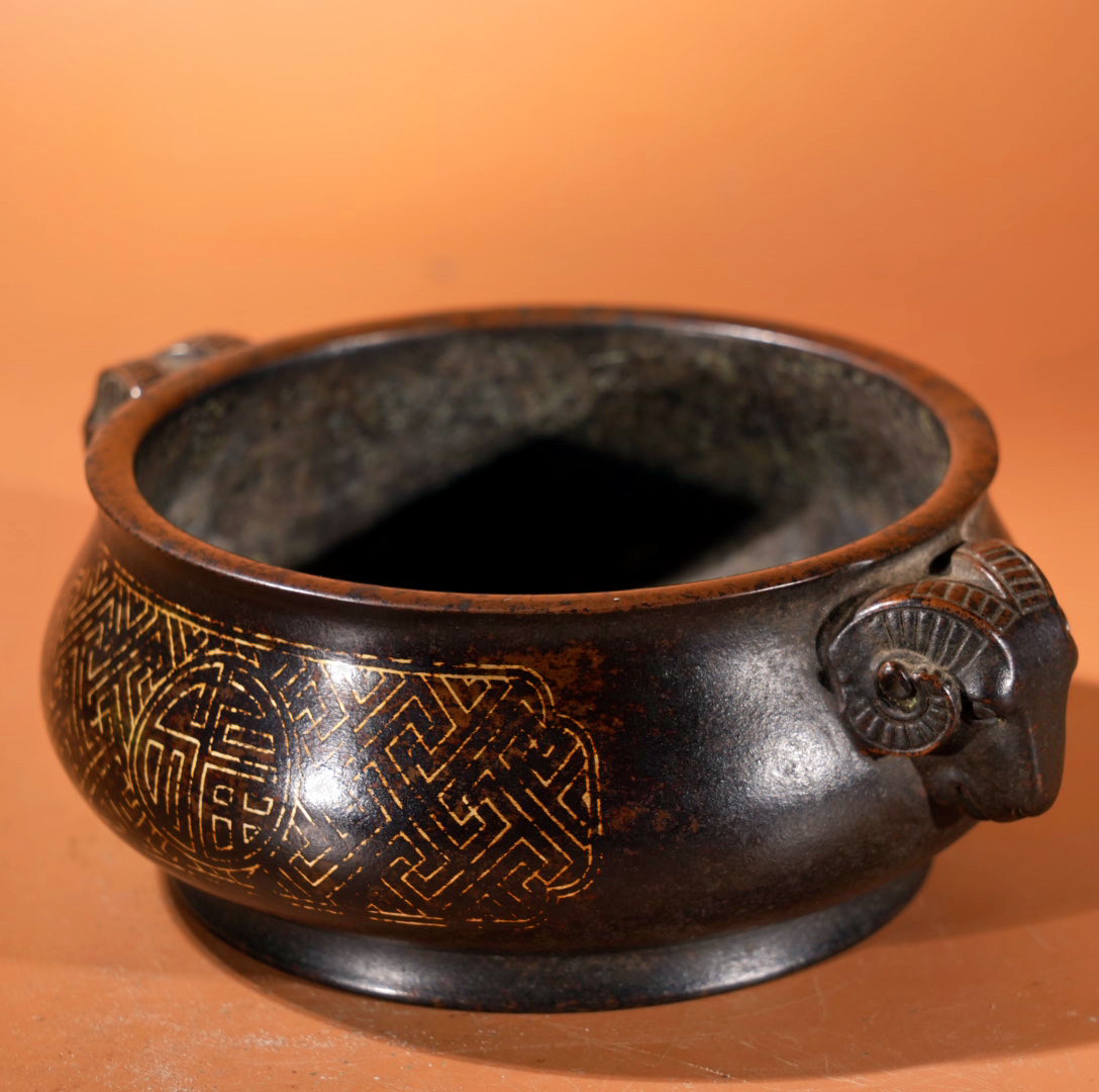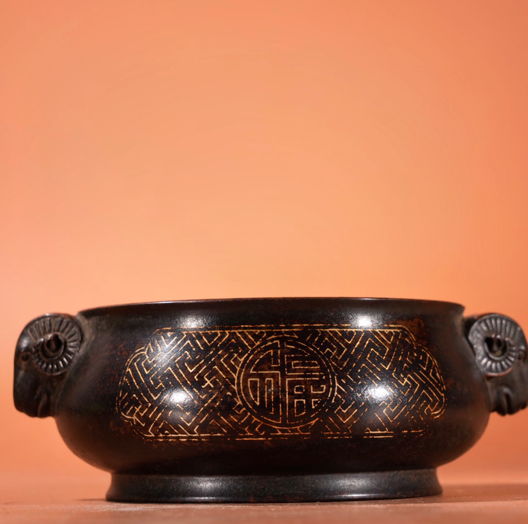 【超珍館蔵】紫銅製 錯銀絲 熏香炉 置物 賞物 古賞物 古董品 古美術品 時代物 旧家蔵出 稀少珍蔵品