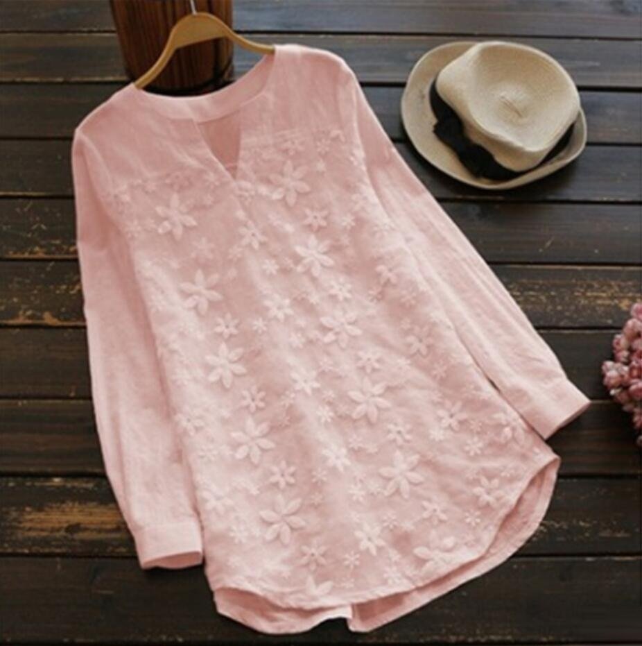 カジュアル トップス 素敵な 刺繍りレース ゆったり 大きいサイズ 長袖 ブラウス チュニック ★白 /Lサイズ