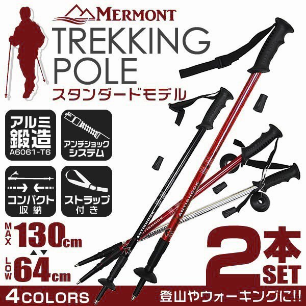 登山やトレッキングに最適な2本使いを基本としたポールです。アンチショック機能付きで体への負担を軽減できます。ジュラルミンを使用しているので軽量で高い強度をもち、アンチショック機能付きで体への負担を軽減できます。 |