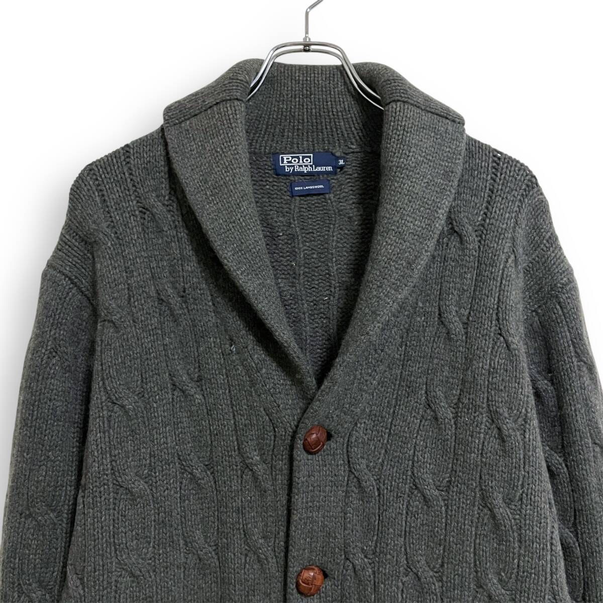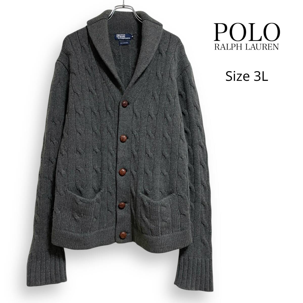 R2530/ POLO RALPH LAUREN ポロ ラルフローレン 厚手 ラムウール ケーブルニット カーディガン 3L