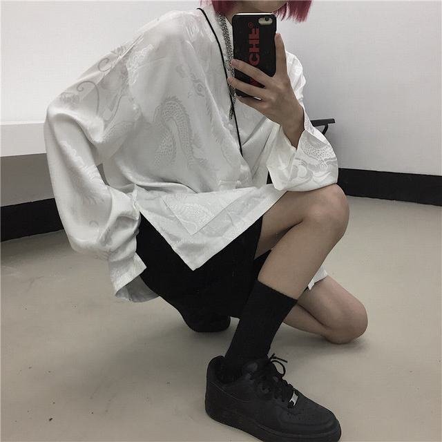 シャツ レディース メンズ 長袖 カバー 服 ブラウス トップス 羽織 大きいサイズ ゆったり 春秋 チャイナ チャイナ風 ホワイト 3XL