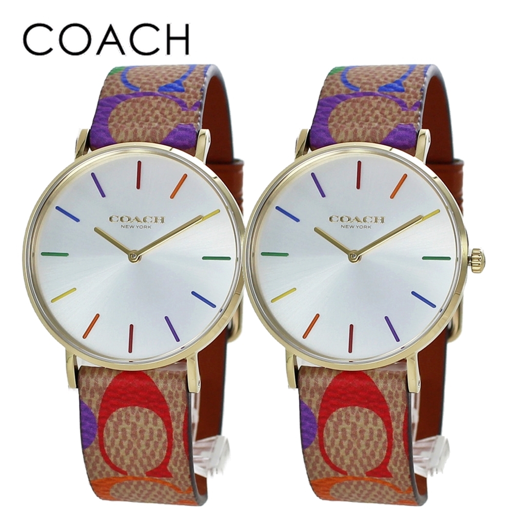 ★★★こちらの商品は、腕時計2本セットのペア商品になります。★★★ペア腕時計ボックス(リングも収納可能)プレゼント中!絆を深めるアイテムとしてカップルに人気の「ペアウォッチ」年齢、シーン、流行問わずにお使い頂けるコーチのおしゃれなペア腕時計です。◎形に残るプレゼントに!◎ずっと一緒に使って欲しいペアギフトに。◎誕生日、結婚記念日など、カップル、夫婦、両親、友達へ。◎父の日、母の日、クリスマスのプレゼントに。◎日常的に使える腕時計は贈り物にもおすすめです。■ブランド:COACH(コーチ)■クオーツ(電池式)■電池交換:量販店の時計売り場や最寄りの腕時計店で可能なモデルです。■防水性:日常生活防水■サイズ(約)時計の幅:36mm(リューズを含まず)ベルト腕周り:最短13cm~最長17.5cm■ベルトカラー:ブラウン、マルチカラー■ブランド専用BOX※ブランドBOXは入荷月によって異なる場合がございます。予めご了承くださいませ。■保証期間:1年間14504075/14504075