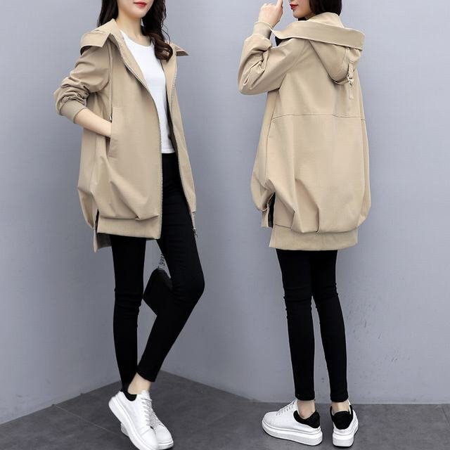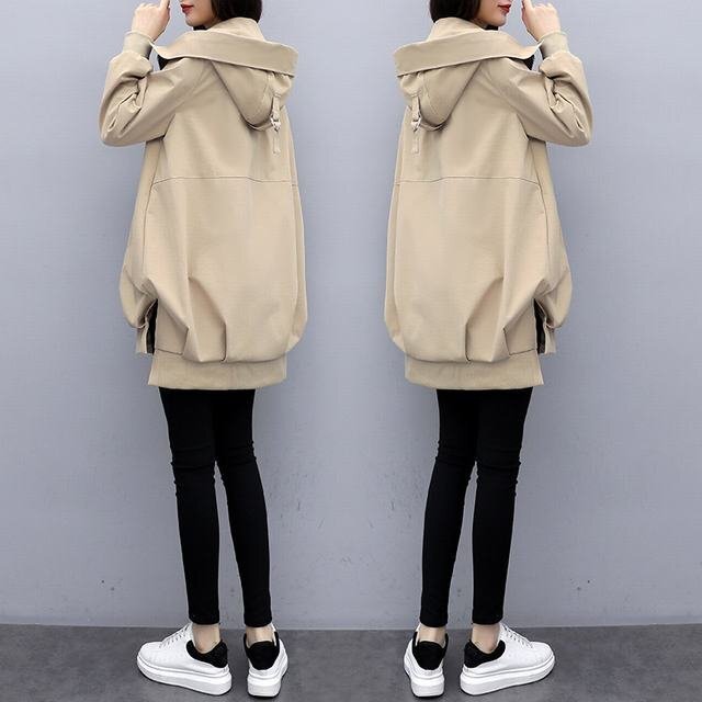 裏地付 ロングコート レディース ジャケット 春 秋 長袖 フード付 ミリタリーコート 防寒 マウンテン カーキ XL
