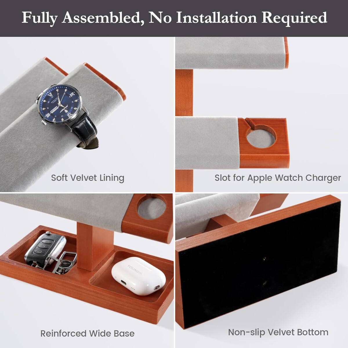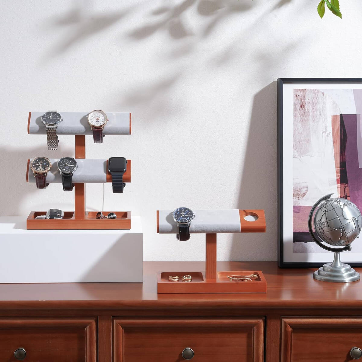 この時計スタンドは無垢材で作られており、スタイリッシュな外観を実現しながら、大切な時計を保管できます。