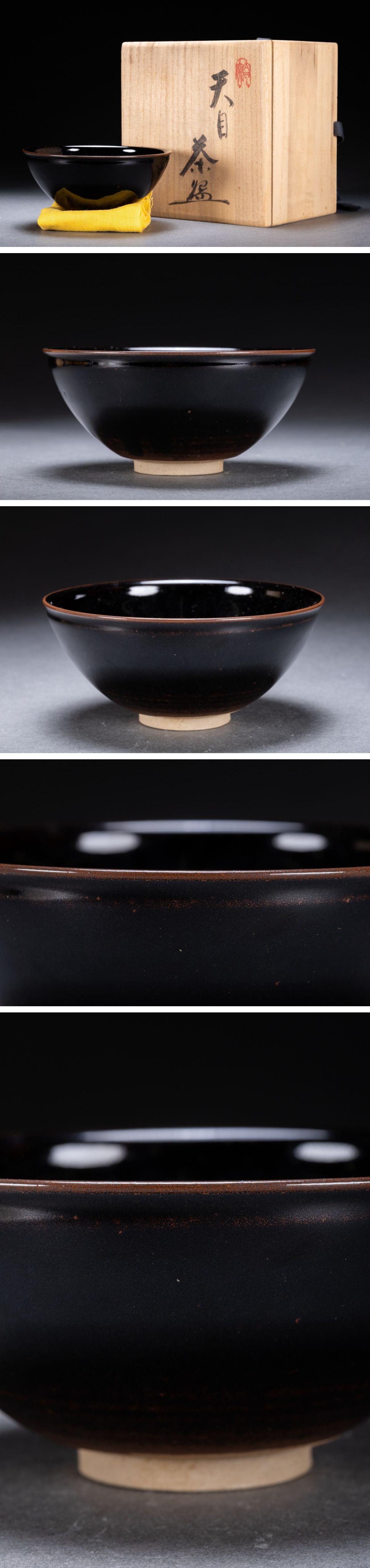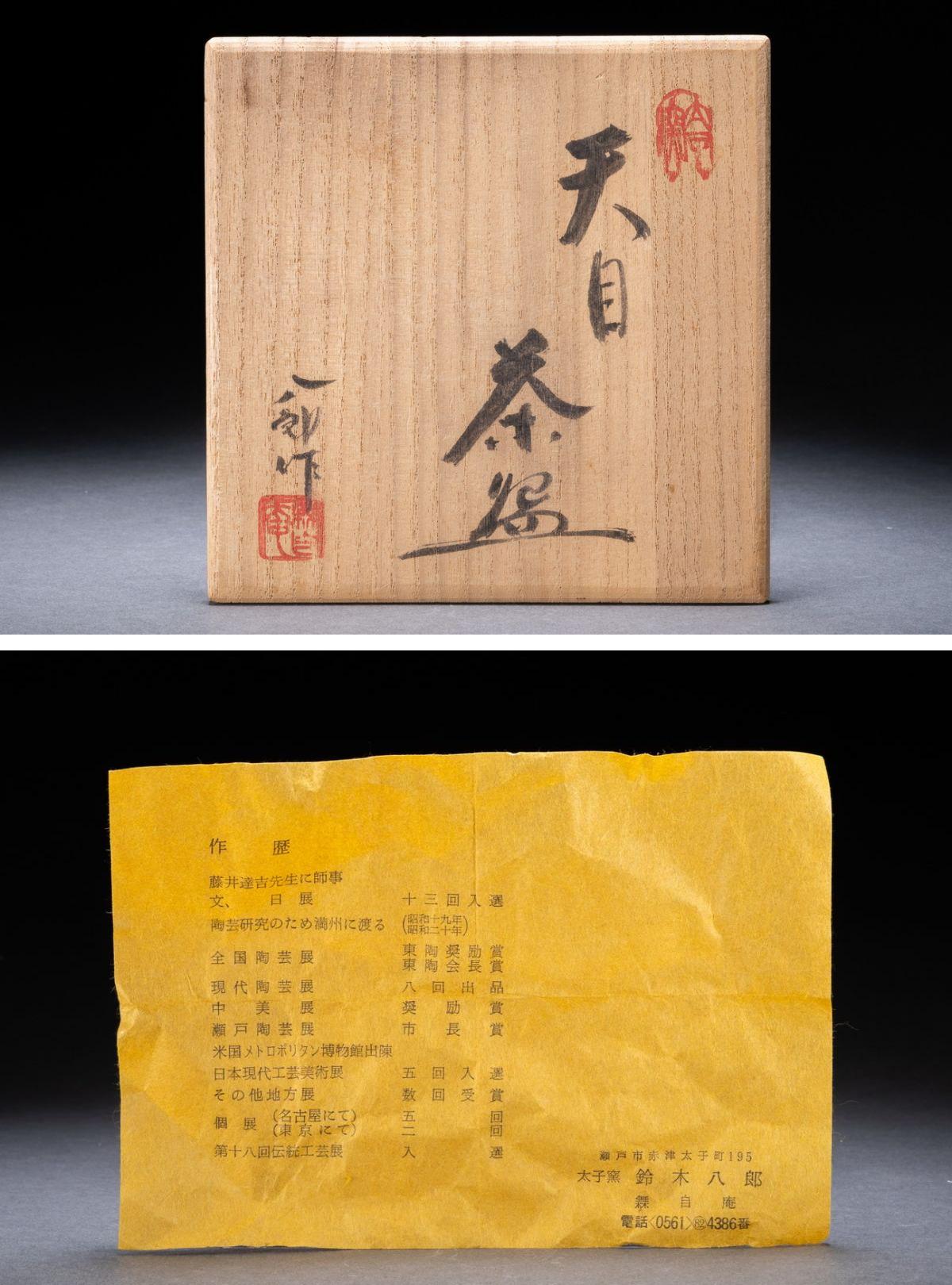 【清】瀬戸焼 鈴木八郎 天目茶碗 茶道具 直入識箱 共布 真作保証 美術品WK9-18