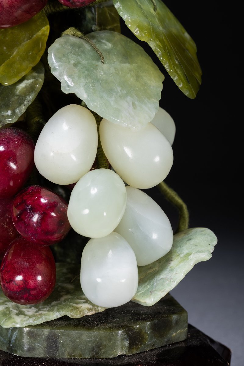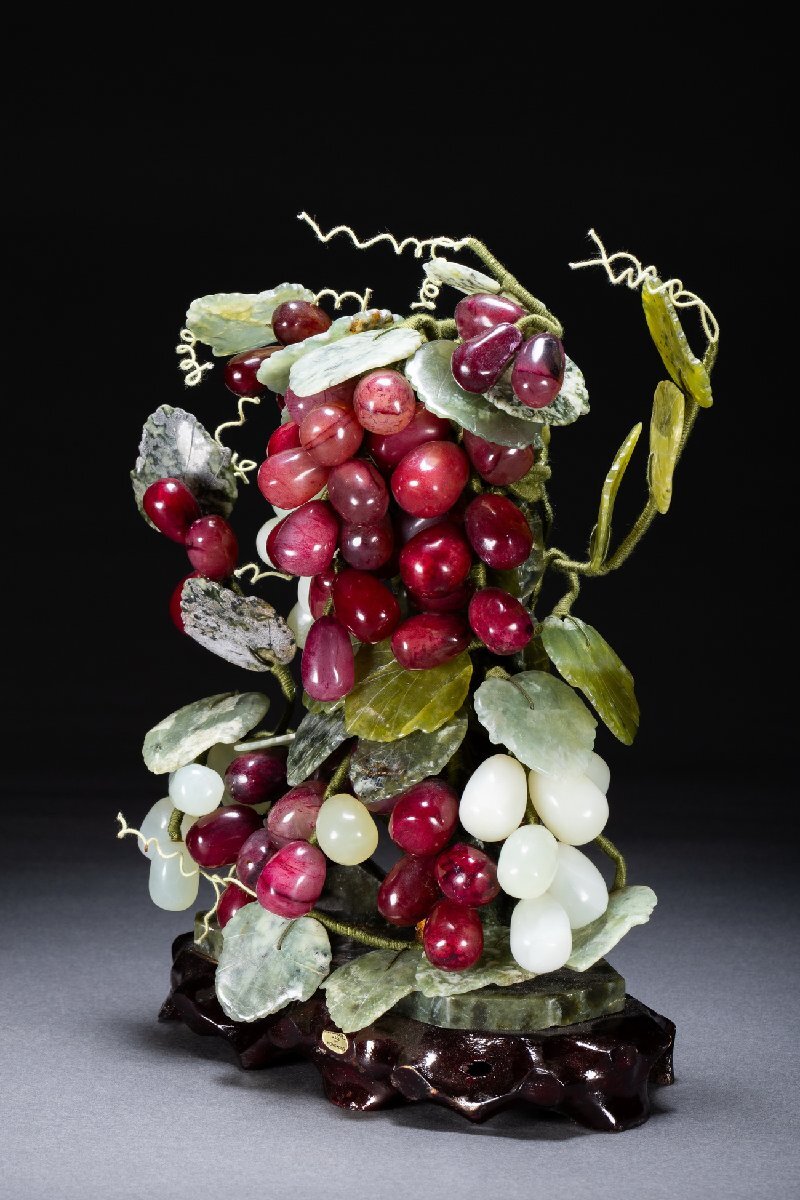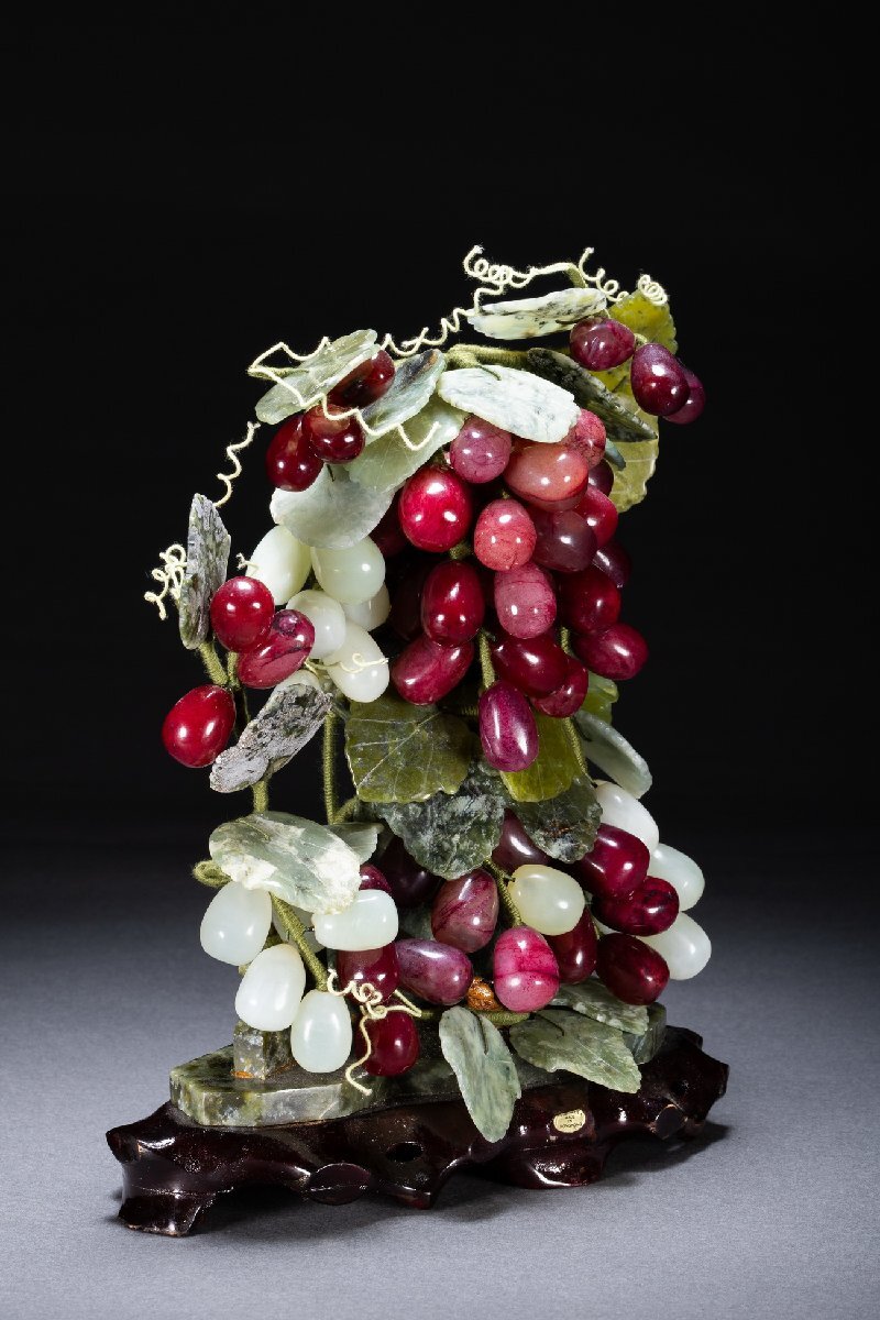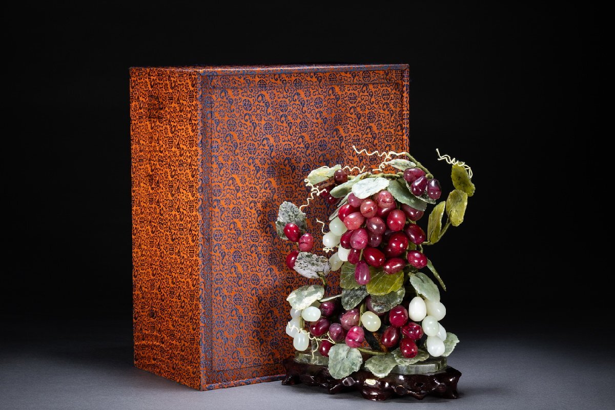 【清】某収集家放出品 時代物 中国伝来 天然玉石 葡萄紋案頭置物 共箱 古美術 骨董品 7G5-272S15