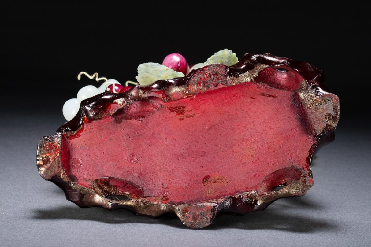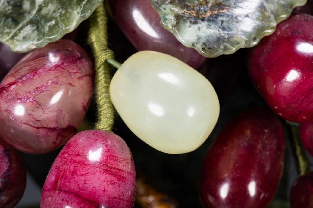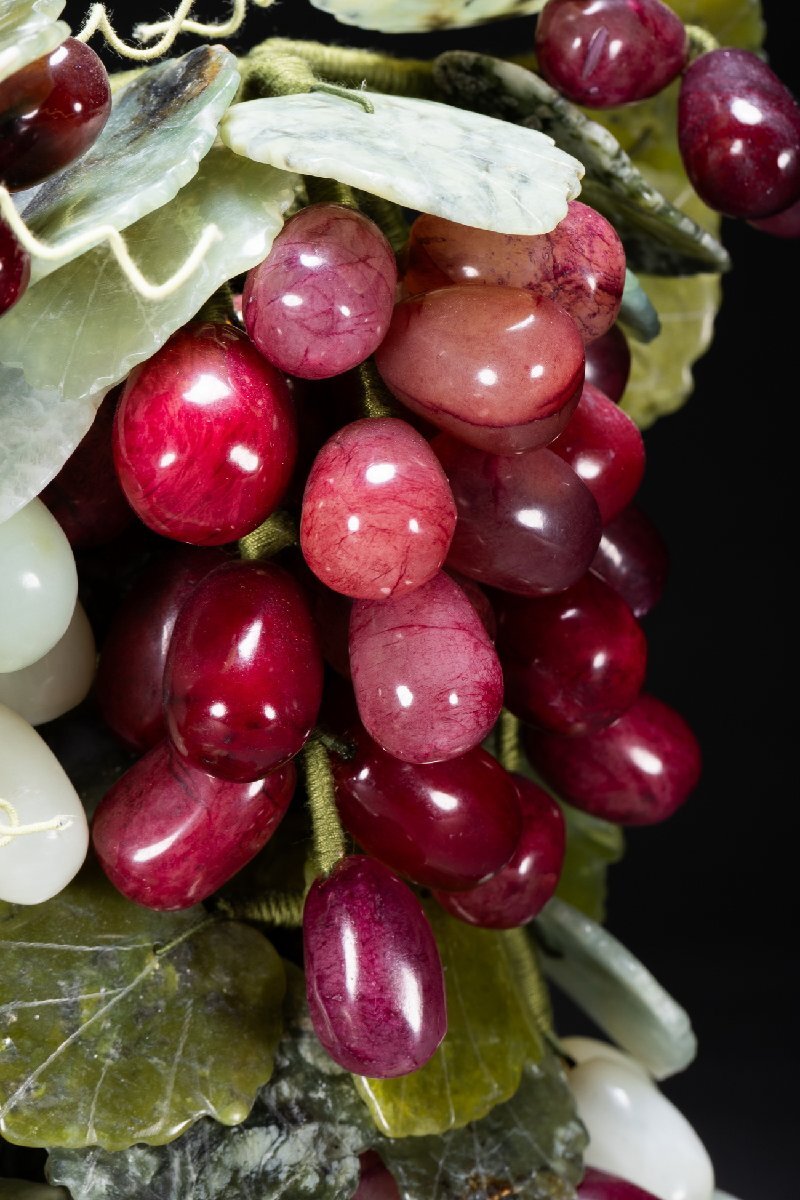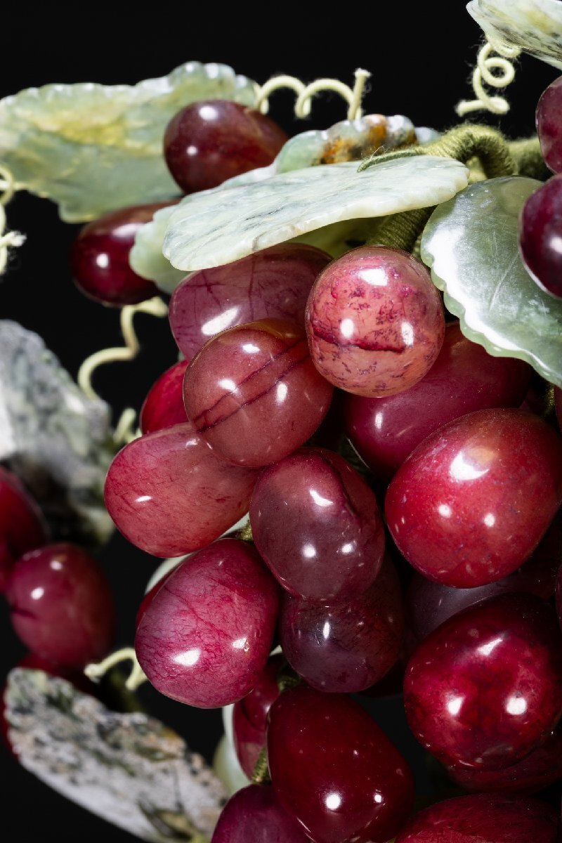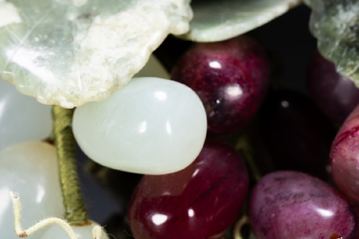 【清】某収集家放出品 時代物 中国伝来 天然玉石 葡萄紋案頭置物 共箱 古美術 骨董品 7G5-272S15