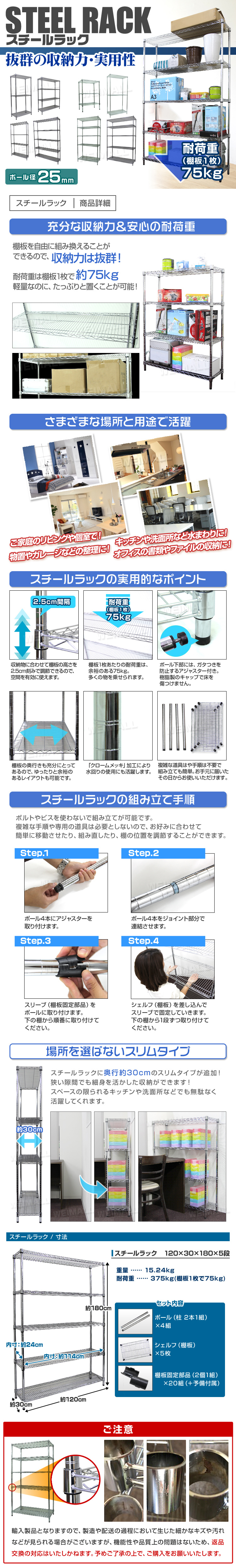 未使用 スチールラック ワイヤーラック ワイヤーシェルフ オープンラック 5段 120×30×180cm テレビ台 業務用 棚 マルチラック 物置 什器