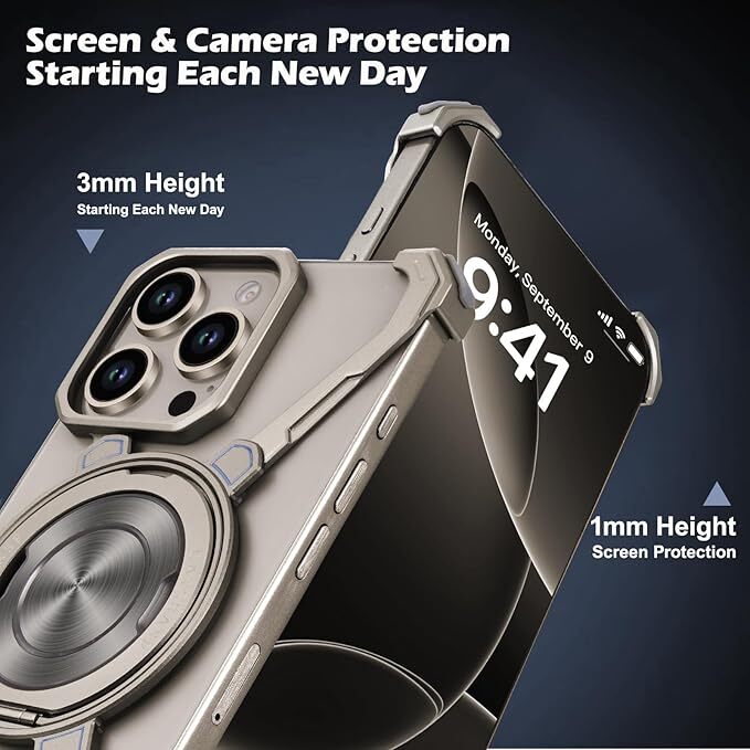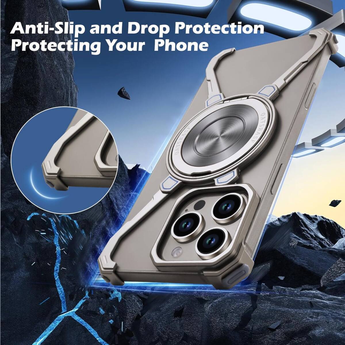 Amazon | OGRANEE iPhone 16 Pro Max 用メタルフレームレスケース、Mag Safe 対応 360° 回転可能なキックスタンド付き、ミニマリストなスリムなハードバンパーで耐衝撃性に優れ、16 Pro Max 用の超薄型カバーで、リングホルダー付きマグネット式スタンド搭載 ナチュラルチタンカラー