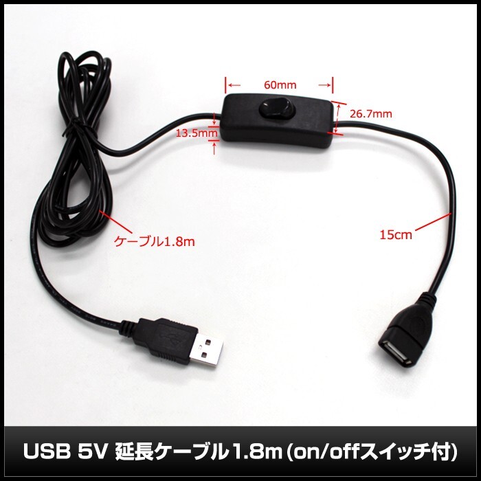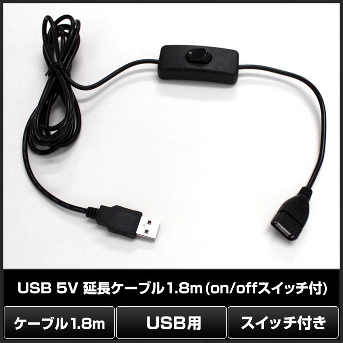 | USB DC5V 延長ケーブル1.8m (on/offスイッチ付) | 1個 |