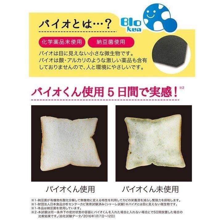 ・ バイオが死滅するおそれがありますので、化学物質系の防虫剤や除湿剤との併用はお避けください。本品には絶対に洗浄剤や薬品がかからないようにしてください。又、本品設置中に室内用害虫駆除剤のご使用はおやめください。もしご使用される場合は、一度本品を取り外されてからご使用ください。