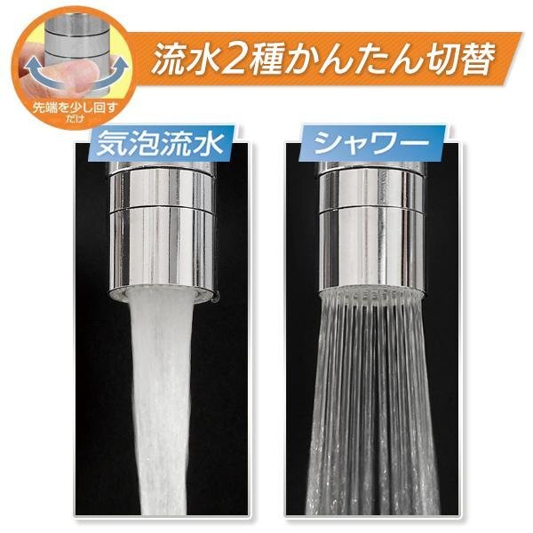 泡を含んだ柔らかい流水とシャワーの2モードを切り替えられます。