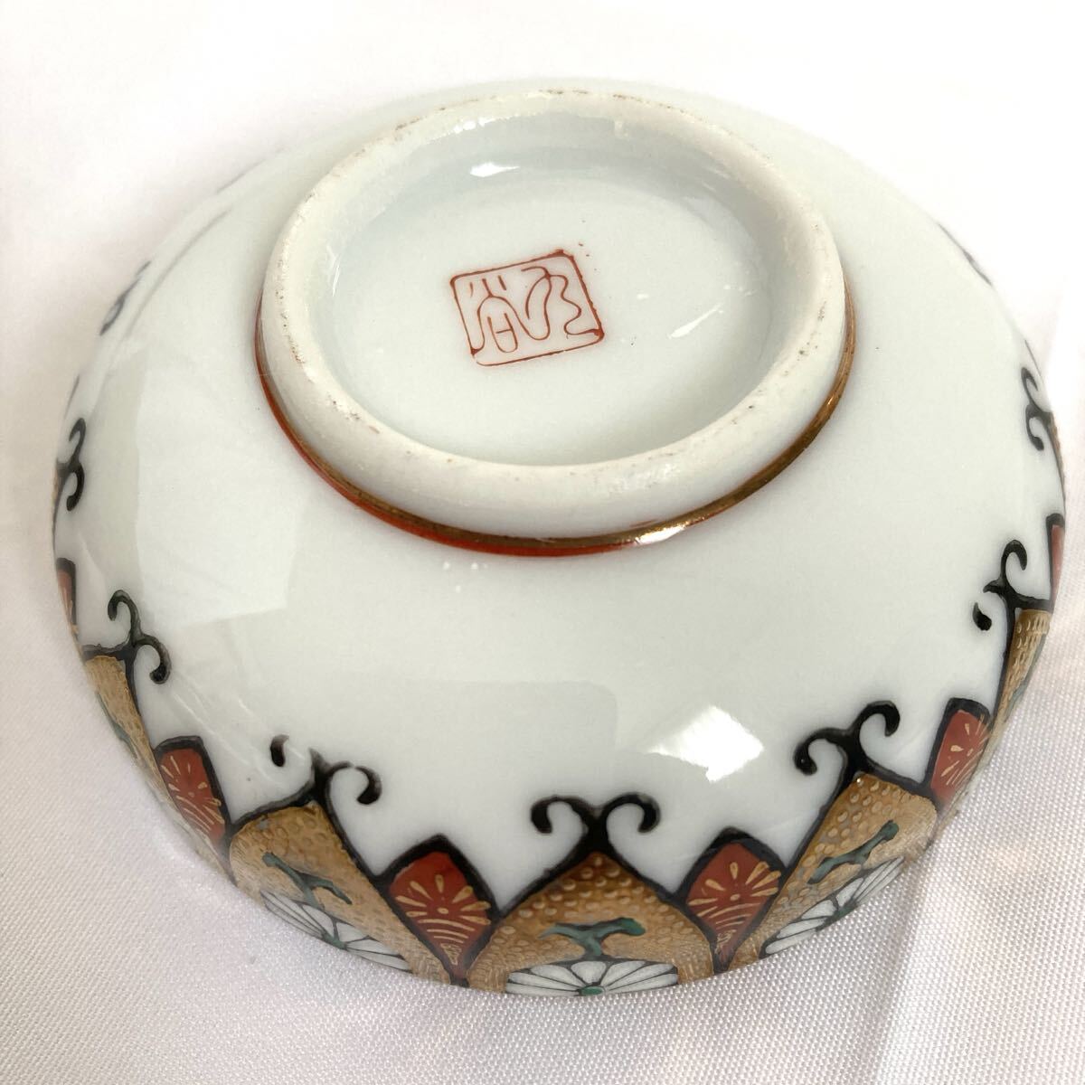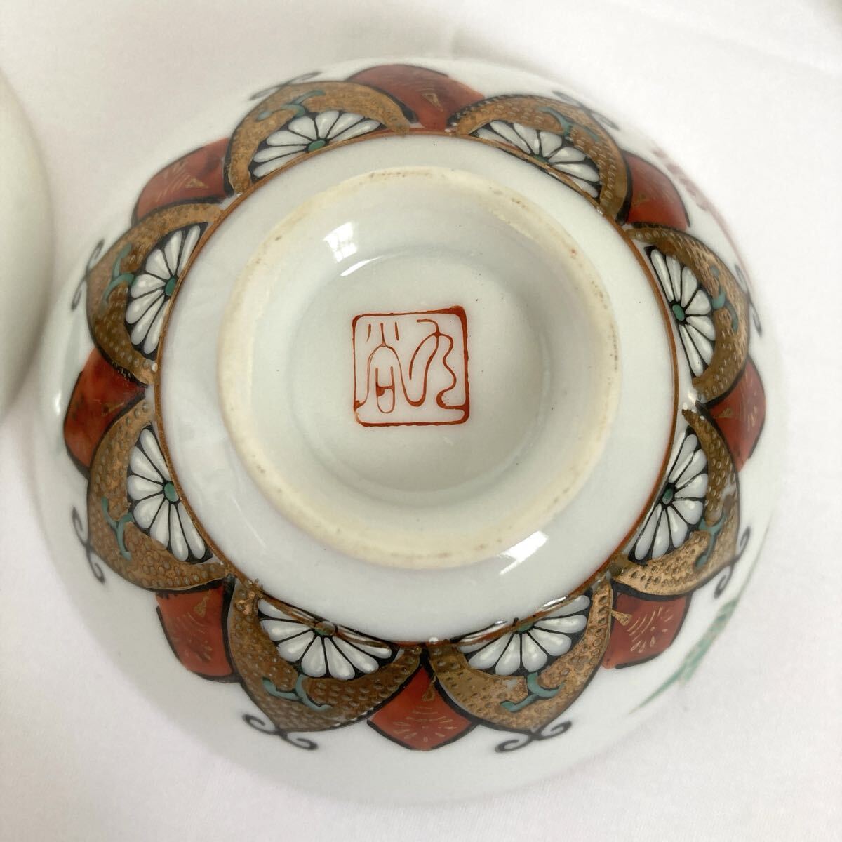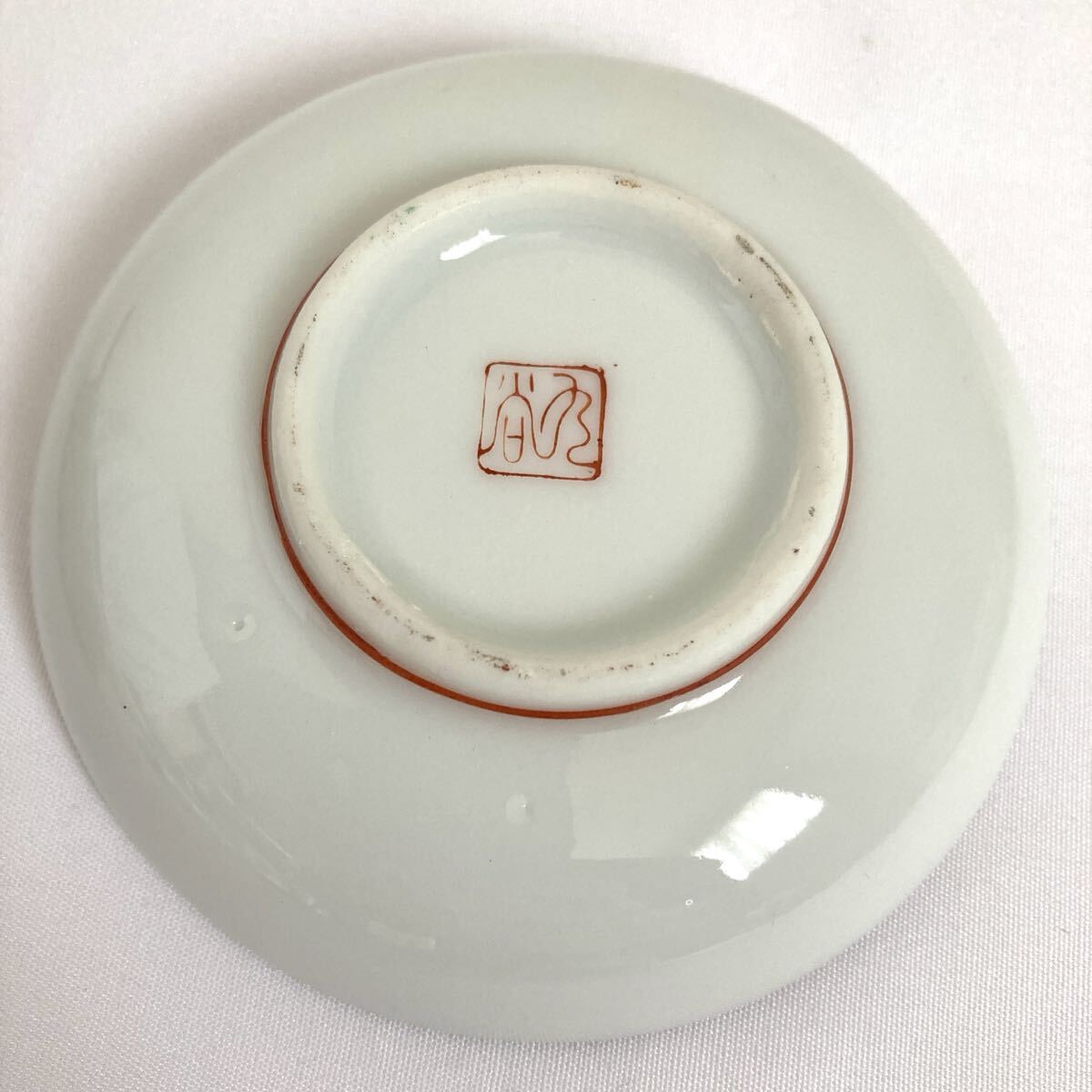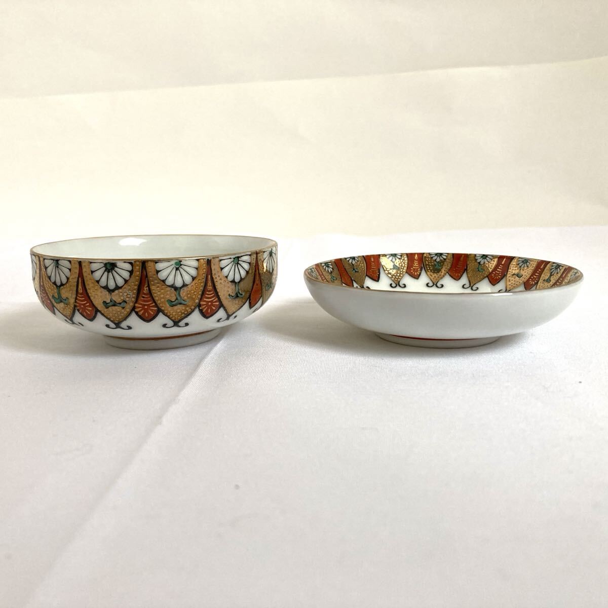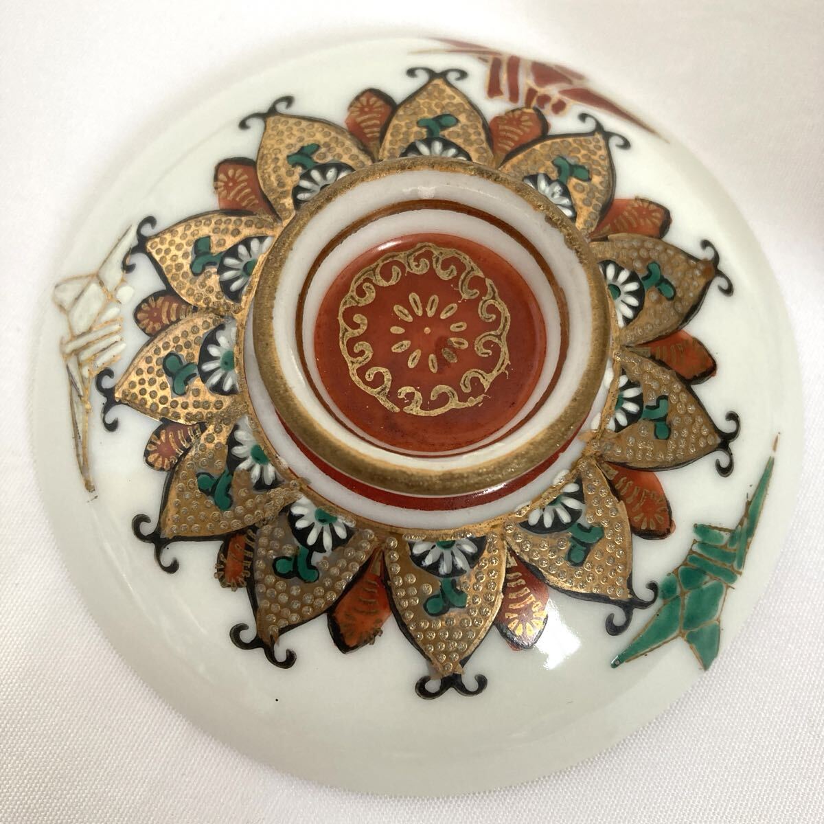 昭和レトロ 九谷焼 蓋つきお茶碗 小皿2種 折り鶴 植物柄 ボタニカル 小ぶりご飯茶碗