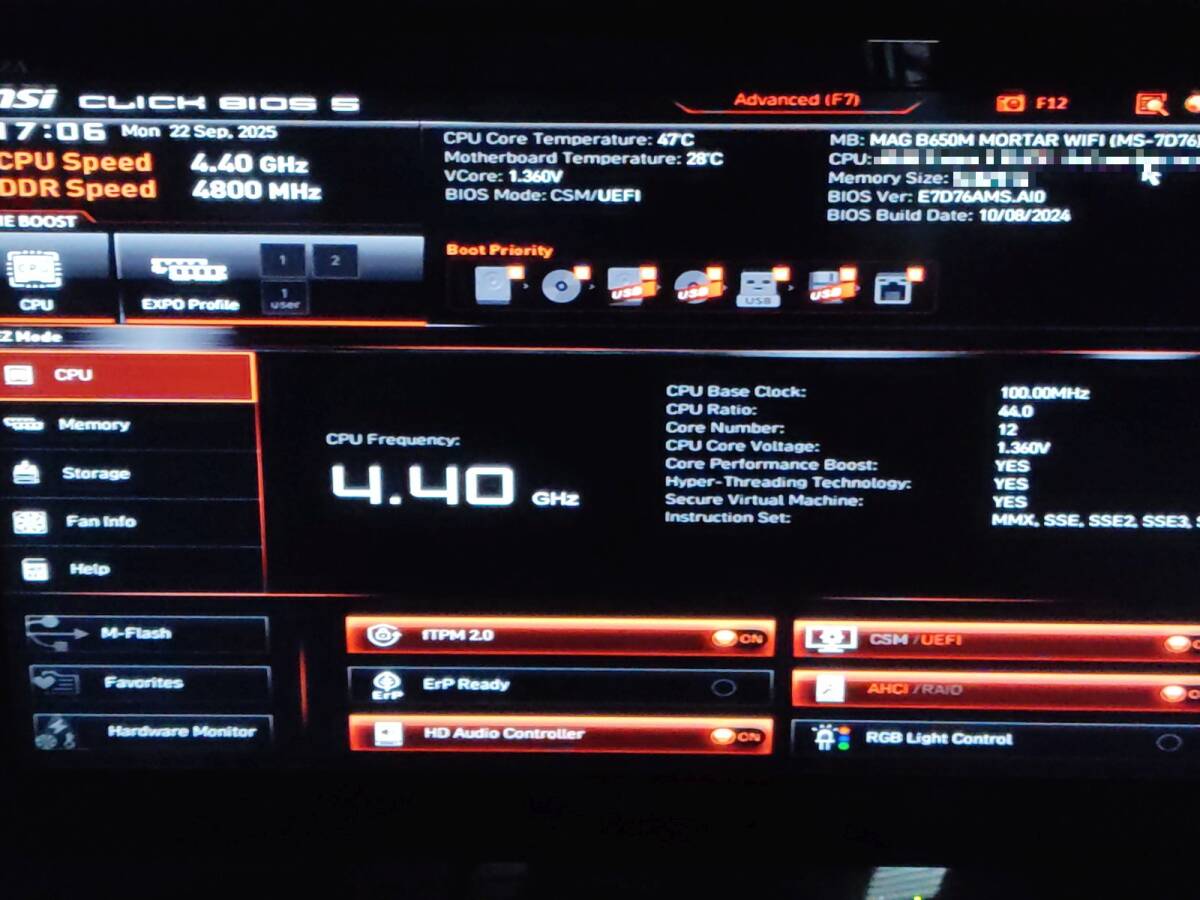 MSI MAG B650M MORTAR WIFI MS-7D76(micro ATX、AM5、DDR5)BIOS確認済み CPUクーラー付き Ryzen9000対応