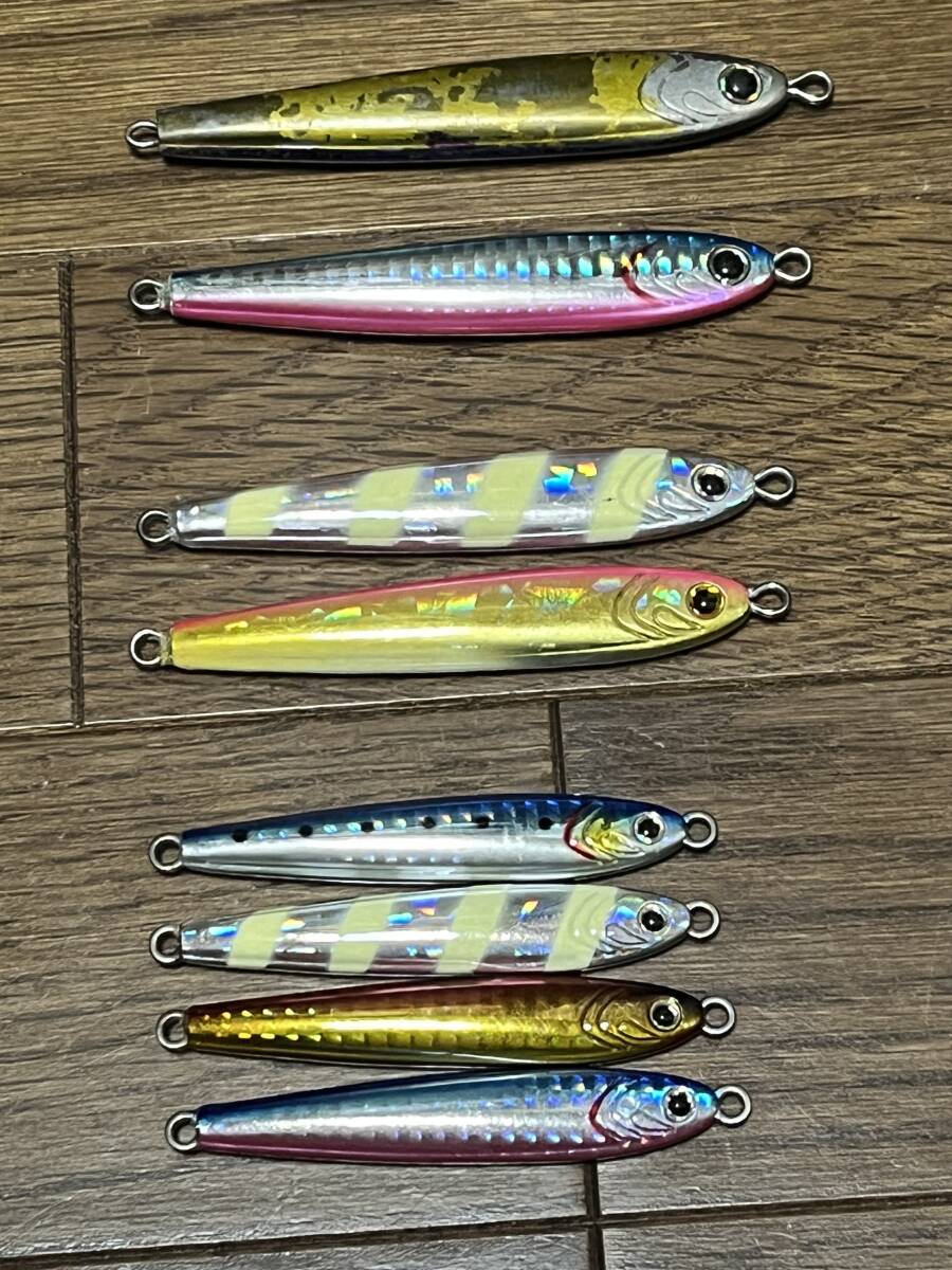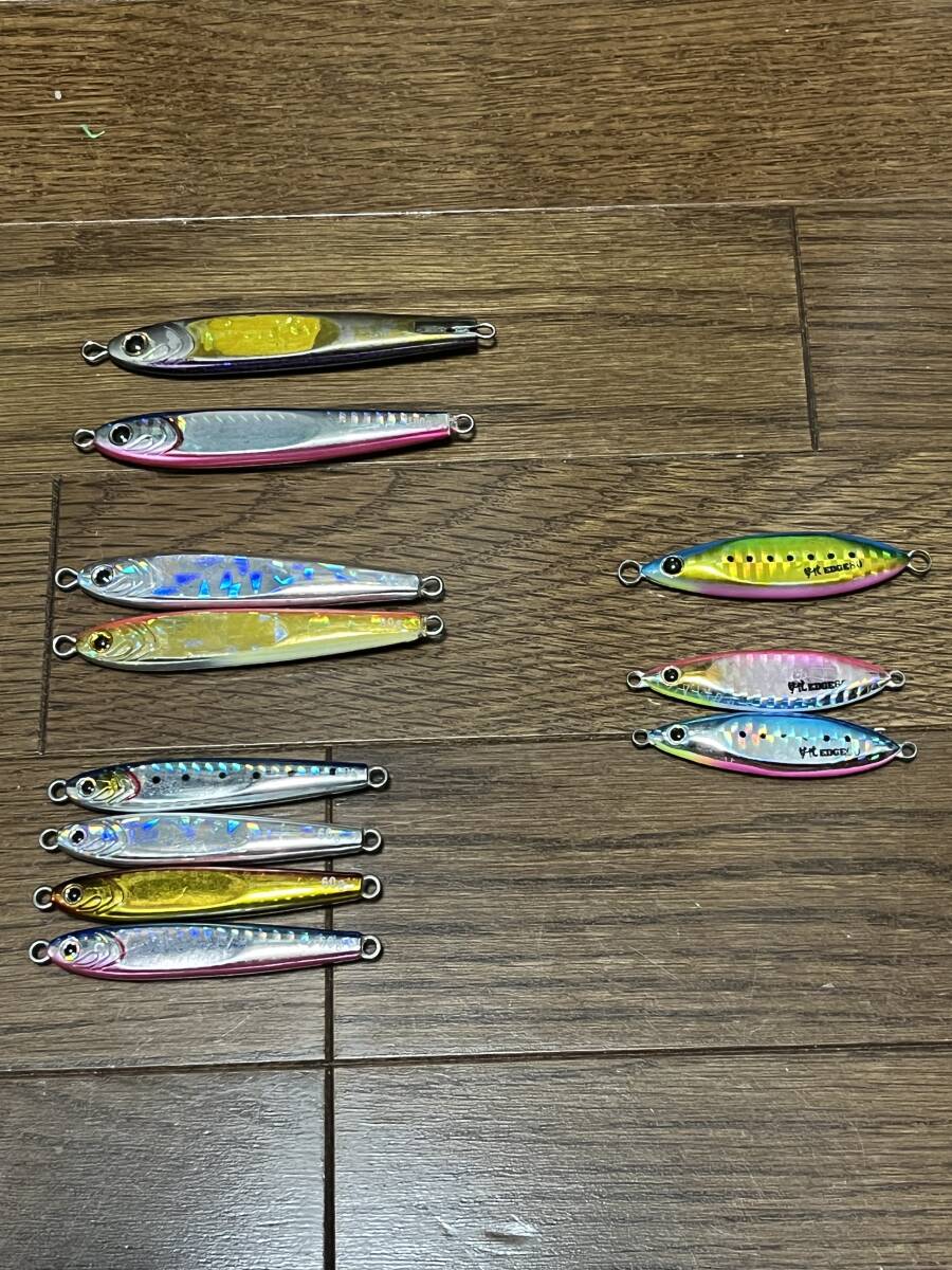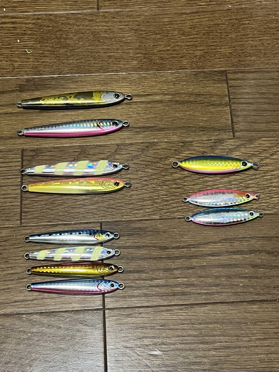 ダイワ DAIWA の TGベイト と 投EDGE の新品と未使用の中古 合計11本 になります。TGベイトは下の4本が60g、次の2本が80g、次の1本が100g、最後の1本がおそらく120gだと思います。1番上、最後の120gがテールアイがこわれていますので、こちらは現状でお願いします。投EDGEが下の2本が60g、最後が80gとなります。未使用も混じっていますが全て開封して現場には持っていっていたので現状は写真でご判断ください。全体的にかなり綺麗だとは思いますが写真でご判断ください。恐らく今後使わないと思いますのでどなたか使っていただければと思い出品致します。冷暗所での保管でしたが古いものですので状態は写真でのご判断をお願い致します。分からないことがあればご質問をお願い致します。送料のご負担とノークレーム、ノーリターンでお願い致します。発送は宅急便コンパクトです。では宜しくお願い致します。