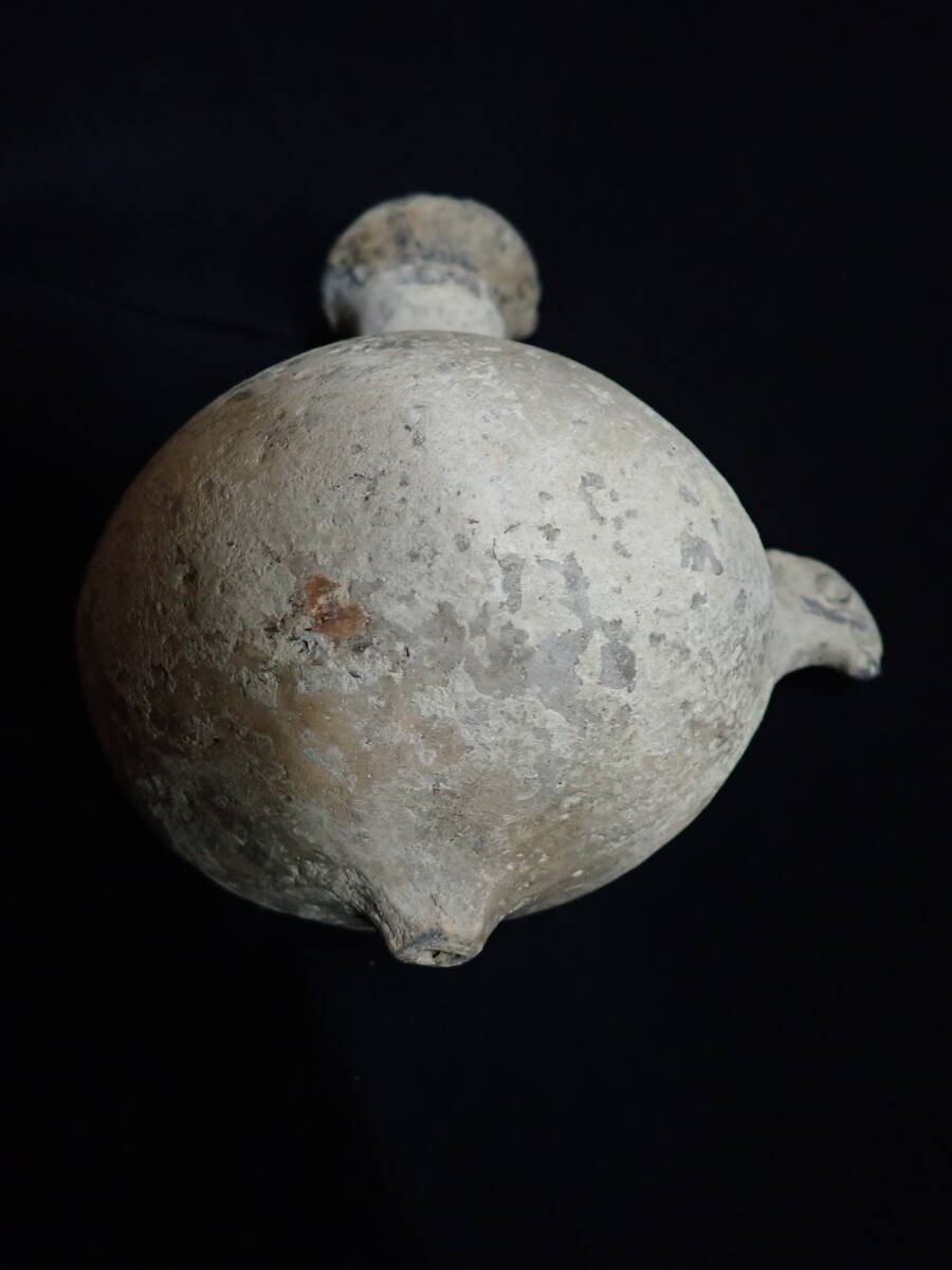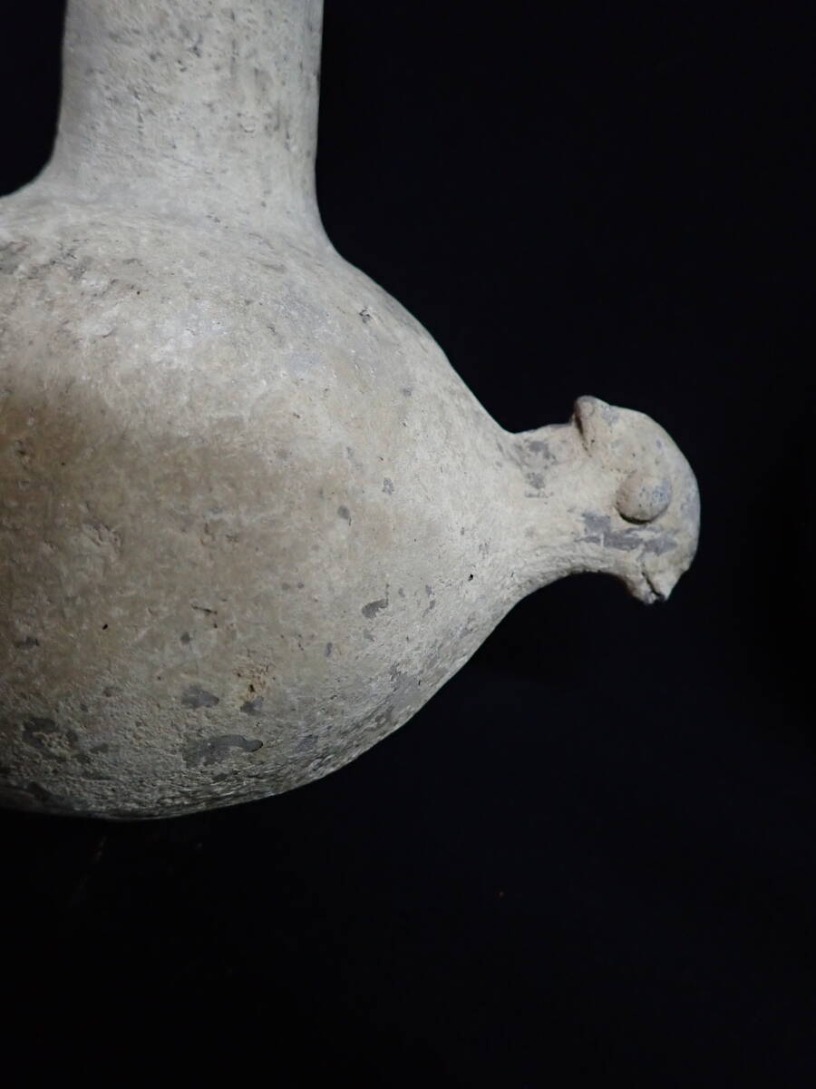 3000年ほど前の古代ペルシャ、アゼルバイジャン出土の黒陶双動物形リュトンです。胴部に動物の頭部と下部に注ぎ口の穴があります。指で穴を押さえワインなどを口に注いだようです。付着物や時代の風化等ありますが、これといった大きな割れや直しもありません。 イランアゼルバイジャン地方出土 高さ約17cm