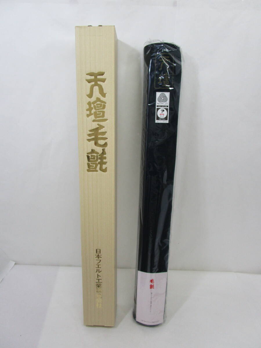 【未使用・茶道具】 ウール100%の紺色の天壇毛氈です。3mm厚です。  (標準タイプ)巾約95cm 長さ約190cm  化粧箱。 在庫未使用品です。どうぞ宜しく。