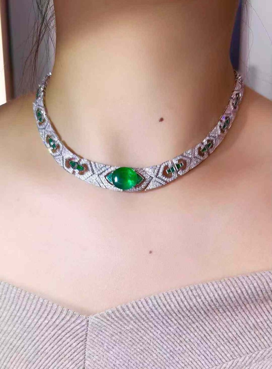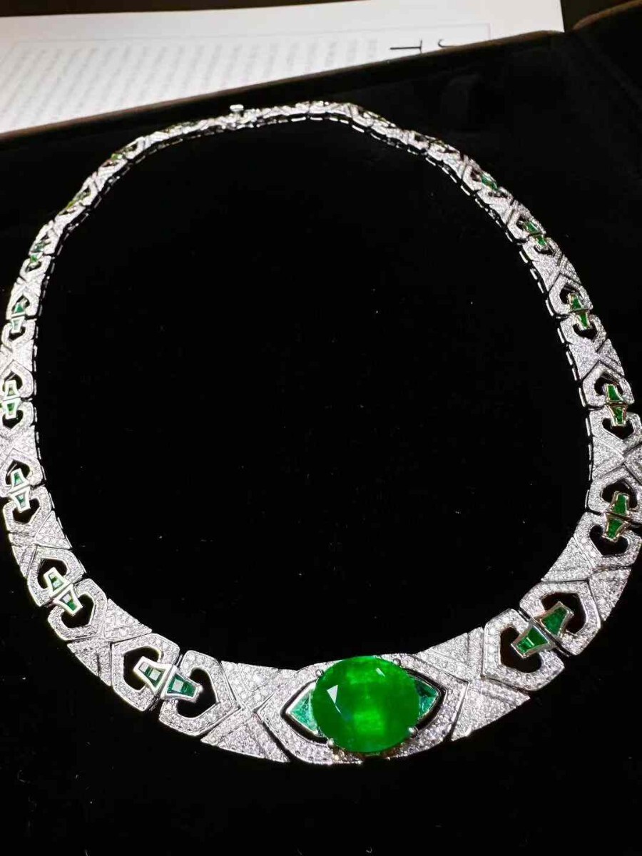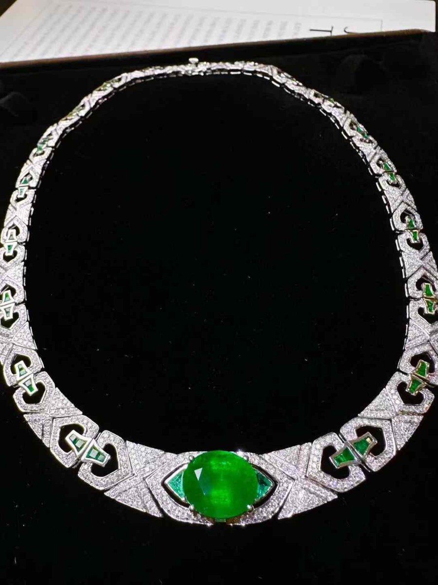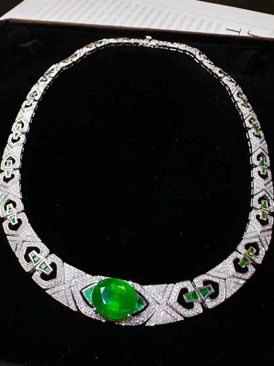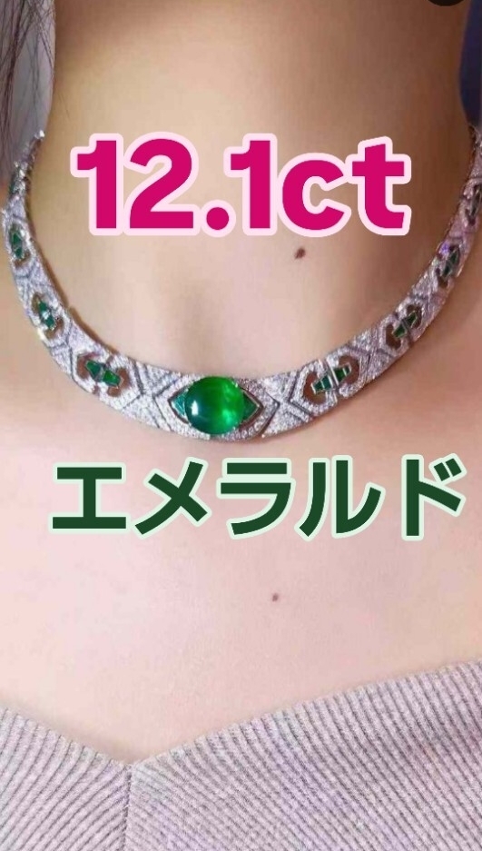 12.1ct エメラルドギルド認証ヴァーダントグリーン エメラルド イブニングネックレス