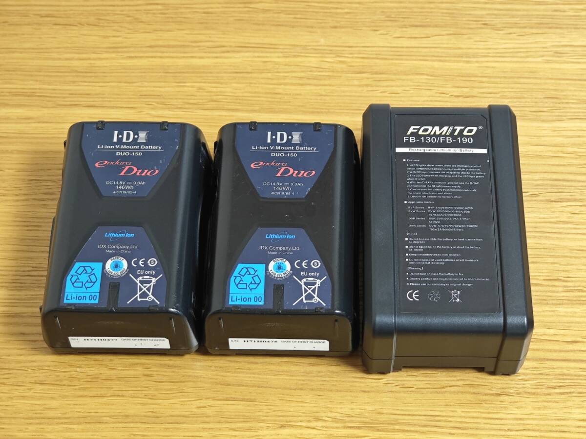 Vマウントバッテリー IDX DUO-150 2本 & FOMITO FB-130 1本のセット販売になります。