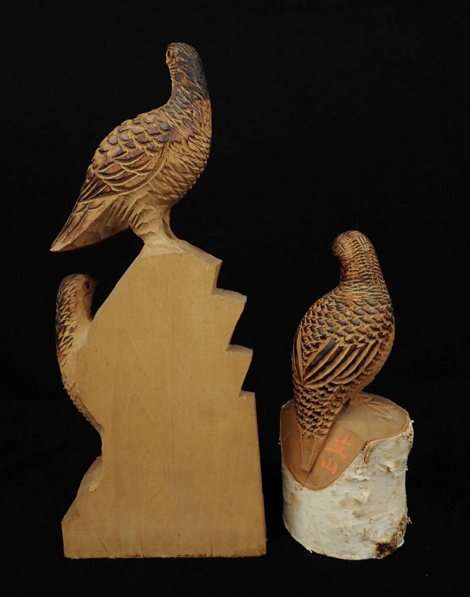 ▲一刀彫 雷鳥 2点(高さ約46cm※大きい方)▲木彫/置物/白樺/立山/民芸品/伝統工芸品/お土産/消費税0円