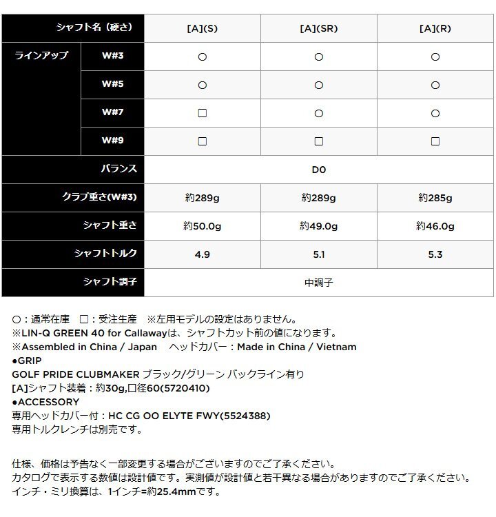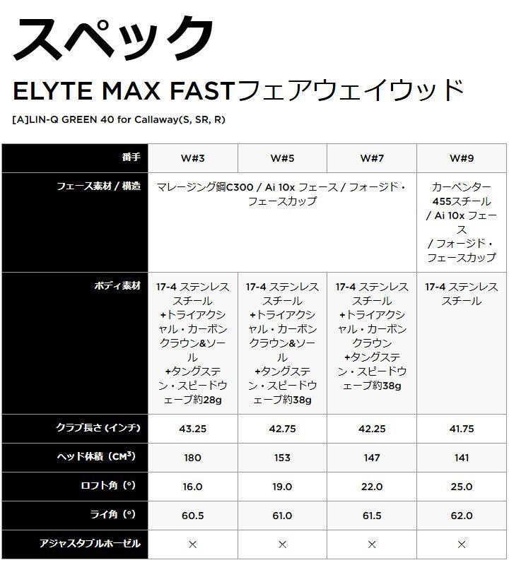 | モデル名 | 2025年 モデル ELYTE MAX FAST エリート マックス ファスト フェアウェイ 日本仕様 |