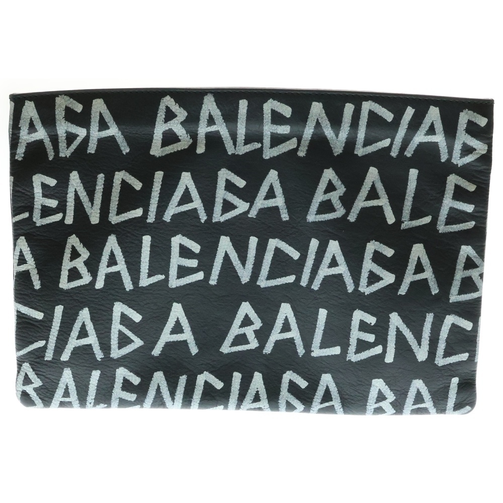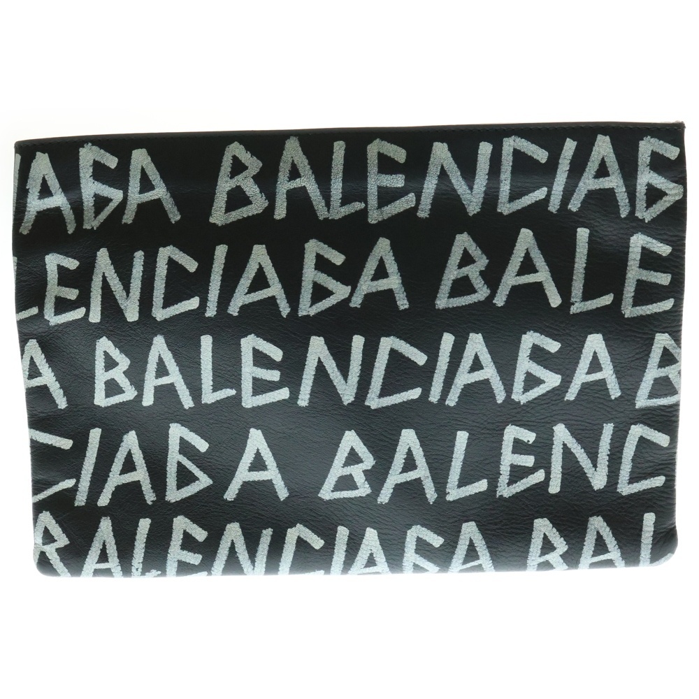 BALENCIAGA バレンシアガ ジップ レザー グラフィティ クラッチバッグ ブラック 494040
