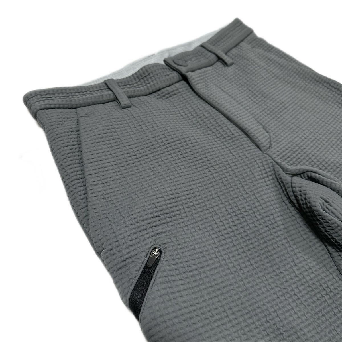ウエスト内側の伸縮性のあるグリップテープが、タックインしたシャツを押さえるから、ラウンドを回る間もすっきりシャープに見える。