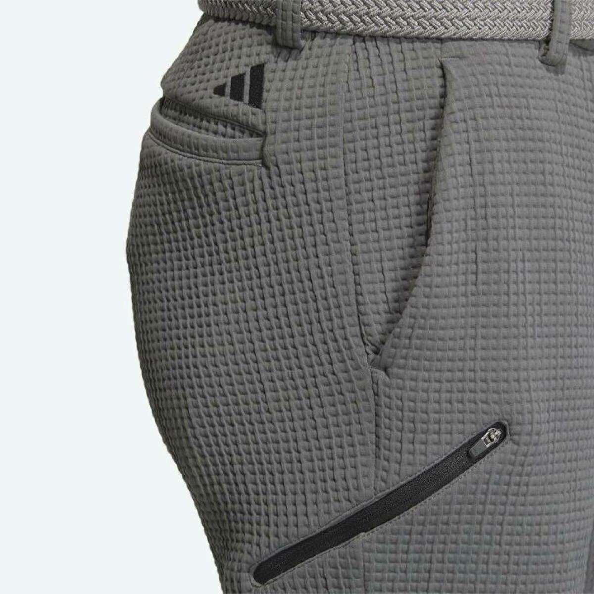 ワッフルニット生地で作られたアディダス ゴルフアンクルパンツは、バルクは抑えながら熱を閉じ込めて身体を暖かく保つ作り。