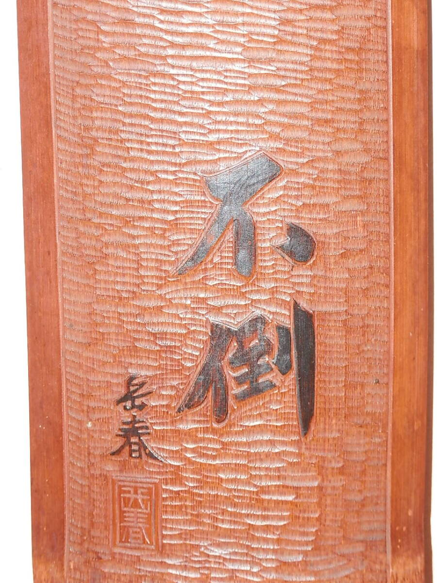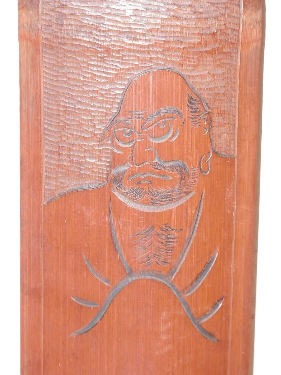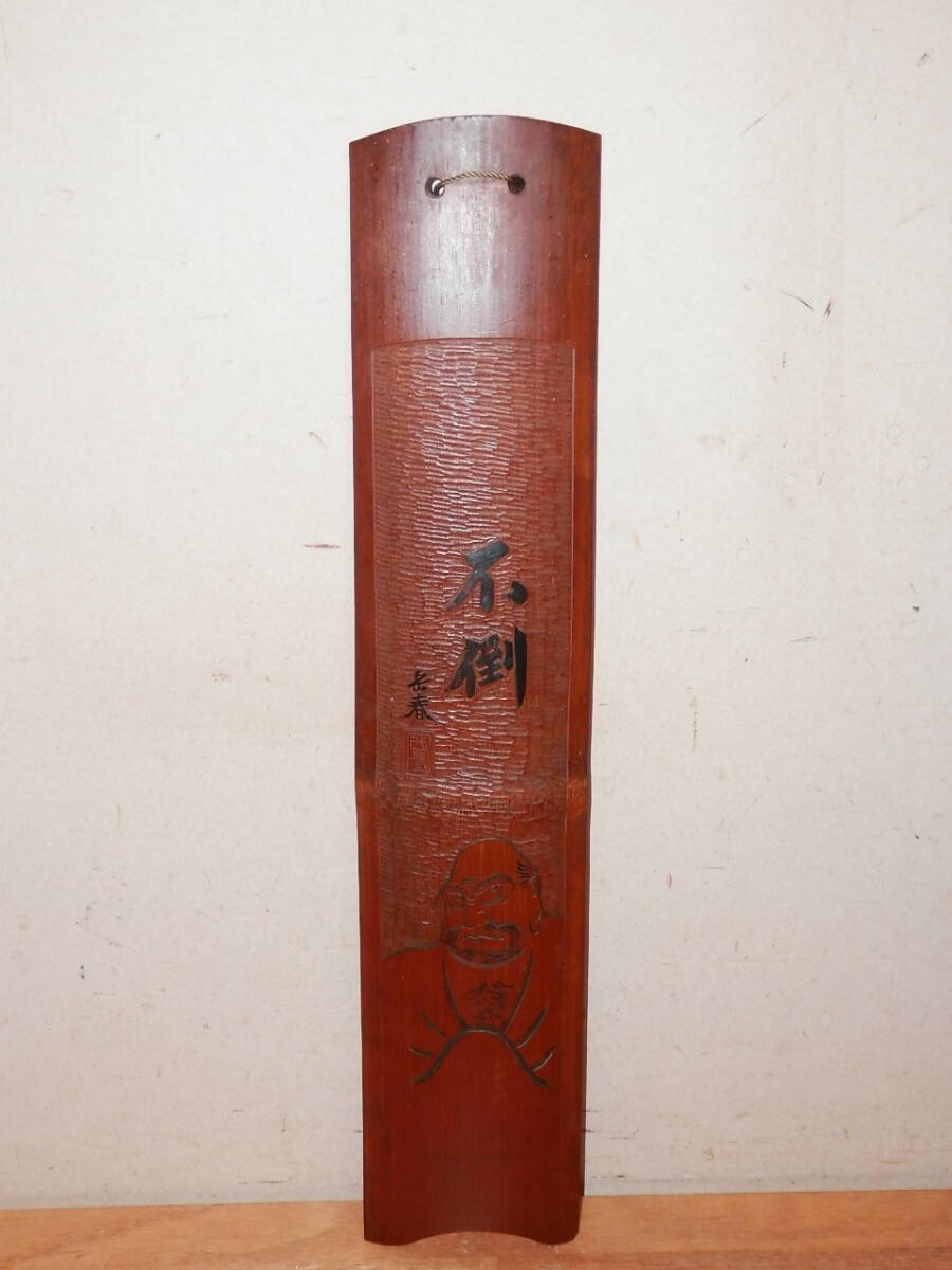岳春銘 「不倒」 達磨大師図 竹製壁掛け 長さ42.3cm 幅8.5cm 在銘