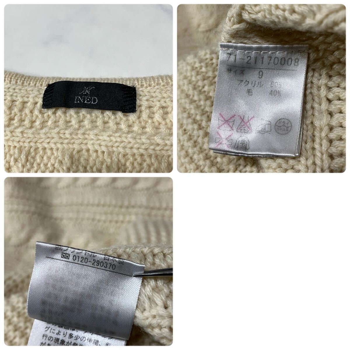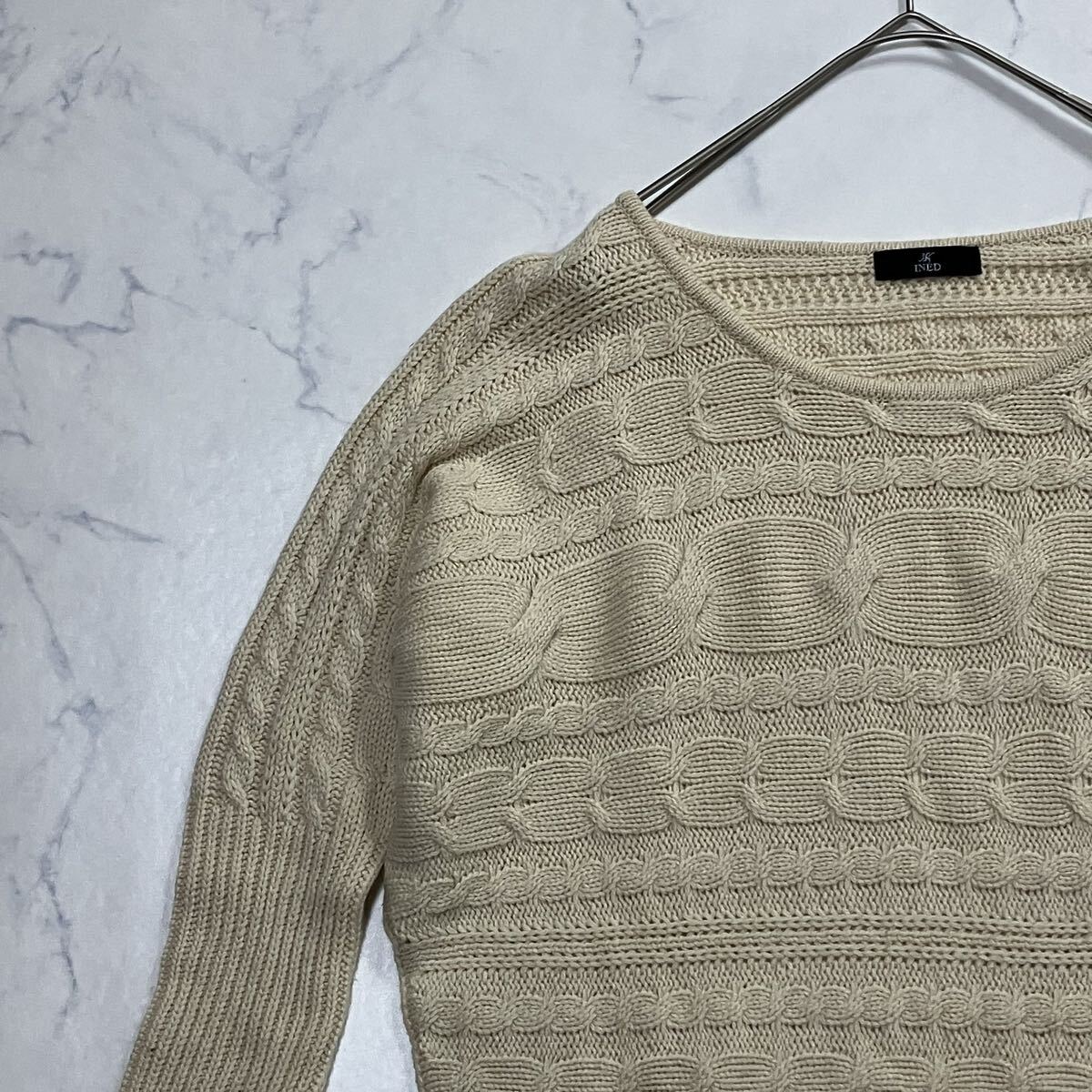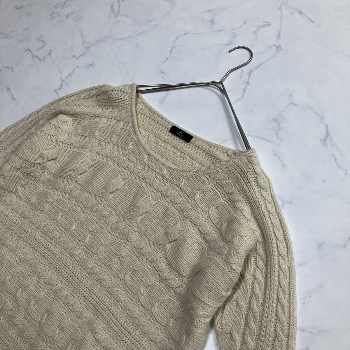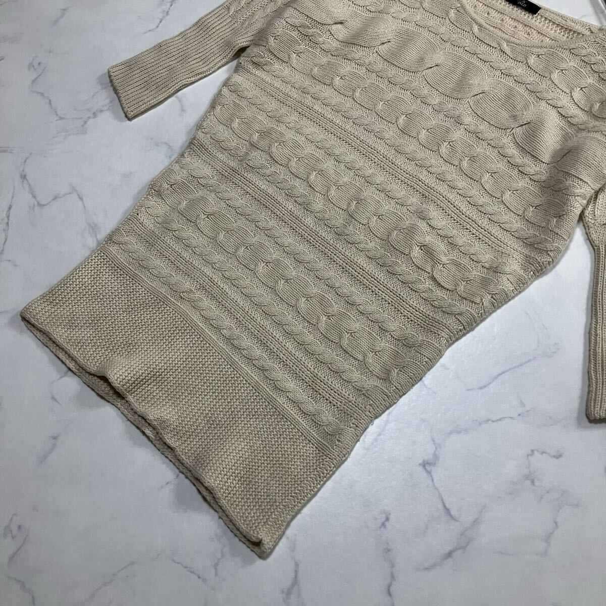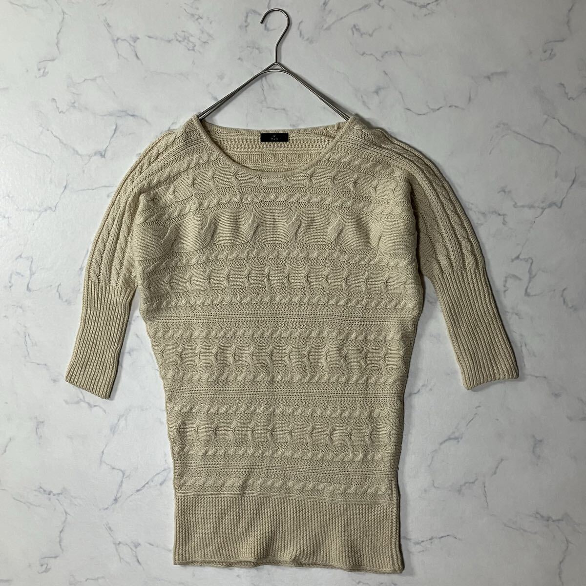 日本製 七分袖 ミドル丈 ラグラン ウール混 ケーブル ニット