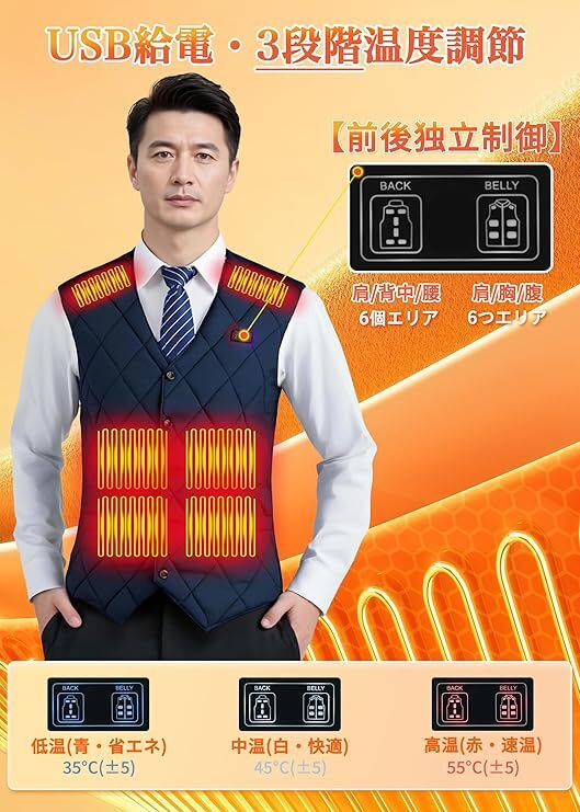 寒い季節にぴったりな12箇所発熱の電熱ベスト。