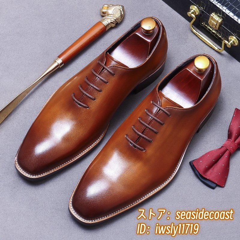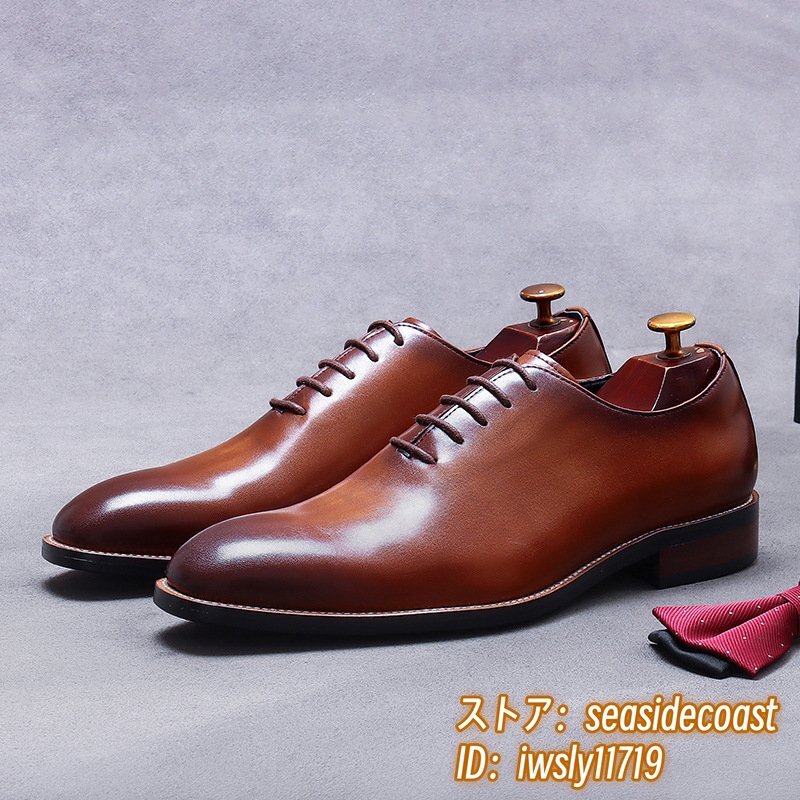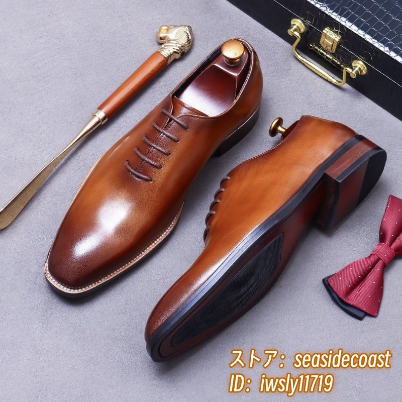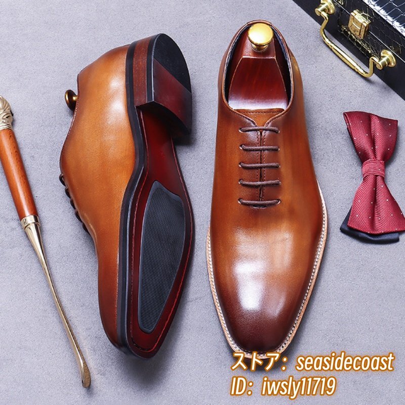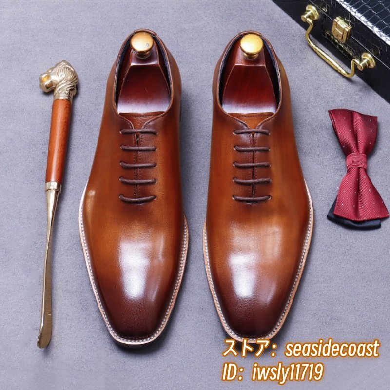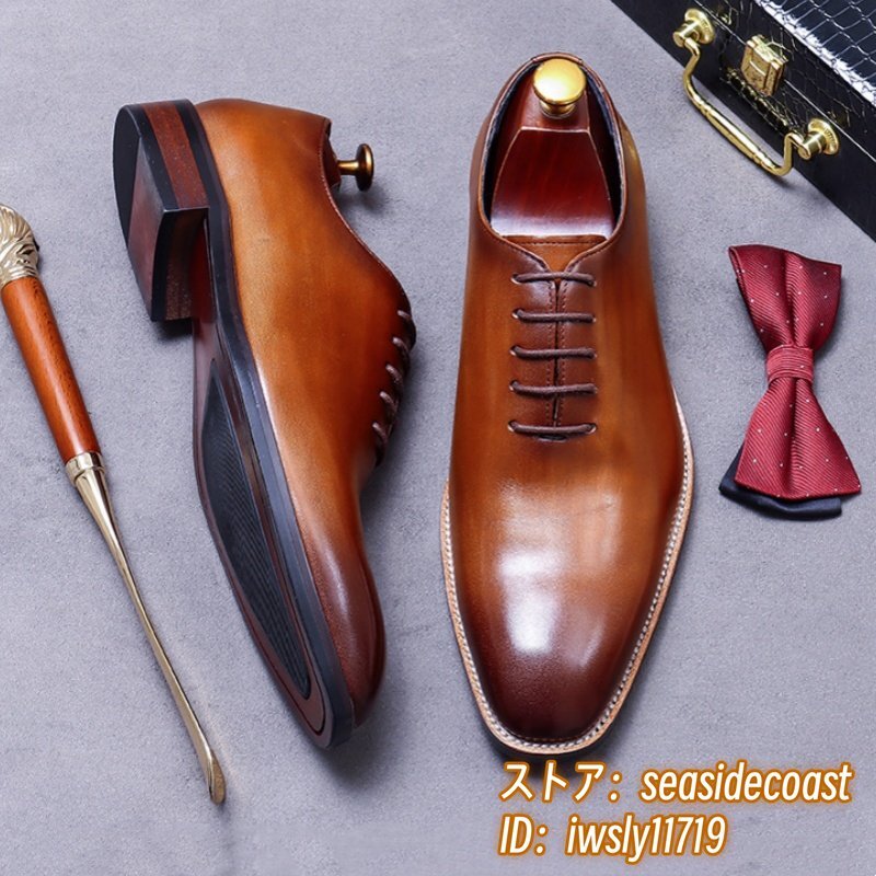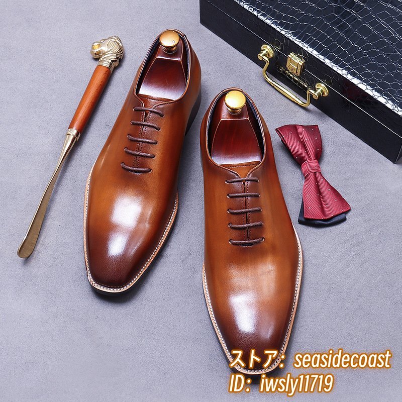 超希少*11万 メンズシューズ 本革 ビジネスシューズ 職人手作り イギリス風 本牛革 レザーシューズ 革靴 紳士靴 冠婚葬祭 ブラウン 24.5cm