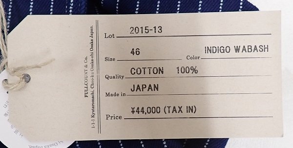| アイテム名 | フルカウント 2015-13 ウォバッシュチョアジャケット |