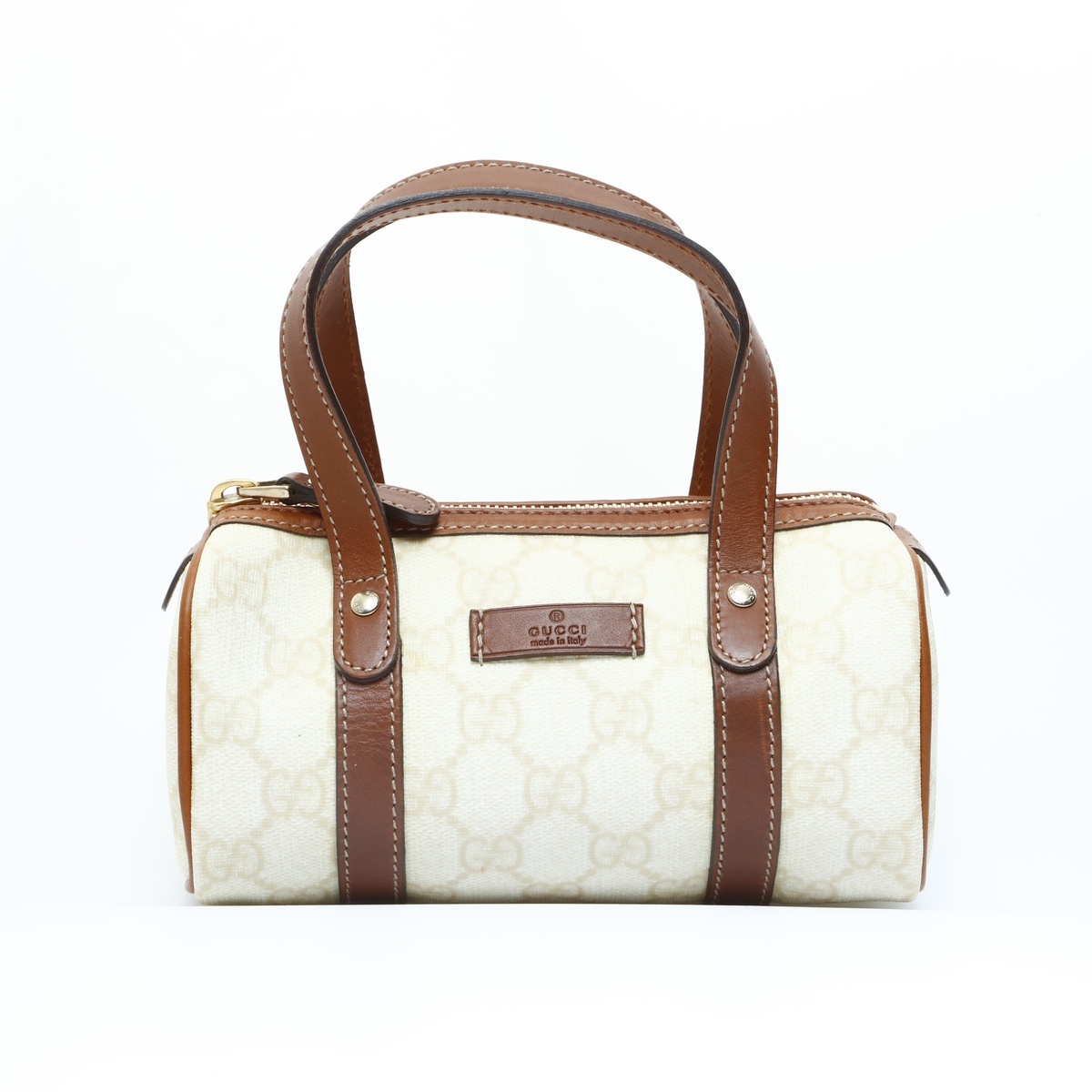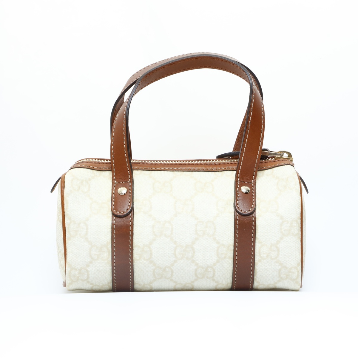 極美品 GUCCI PVC ミニ ボストン ハンドバッグ ベージュ