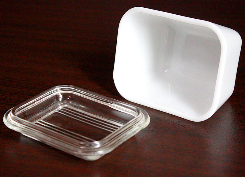 アメリカンビンテージ(アーリーアメリカン)のオールドパイレックス/ミルクガラスのレフ容器です。(計1個)