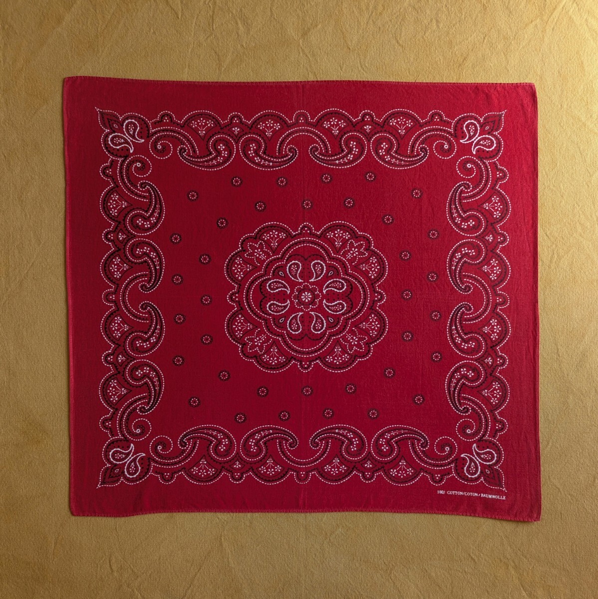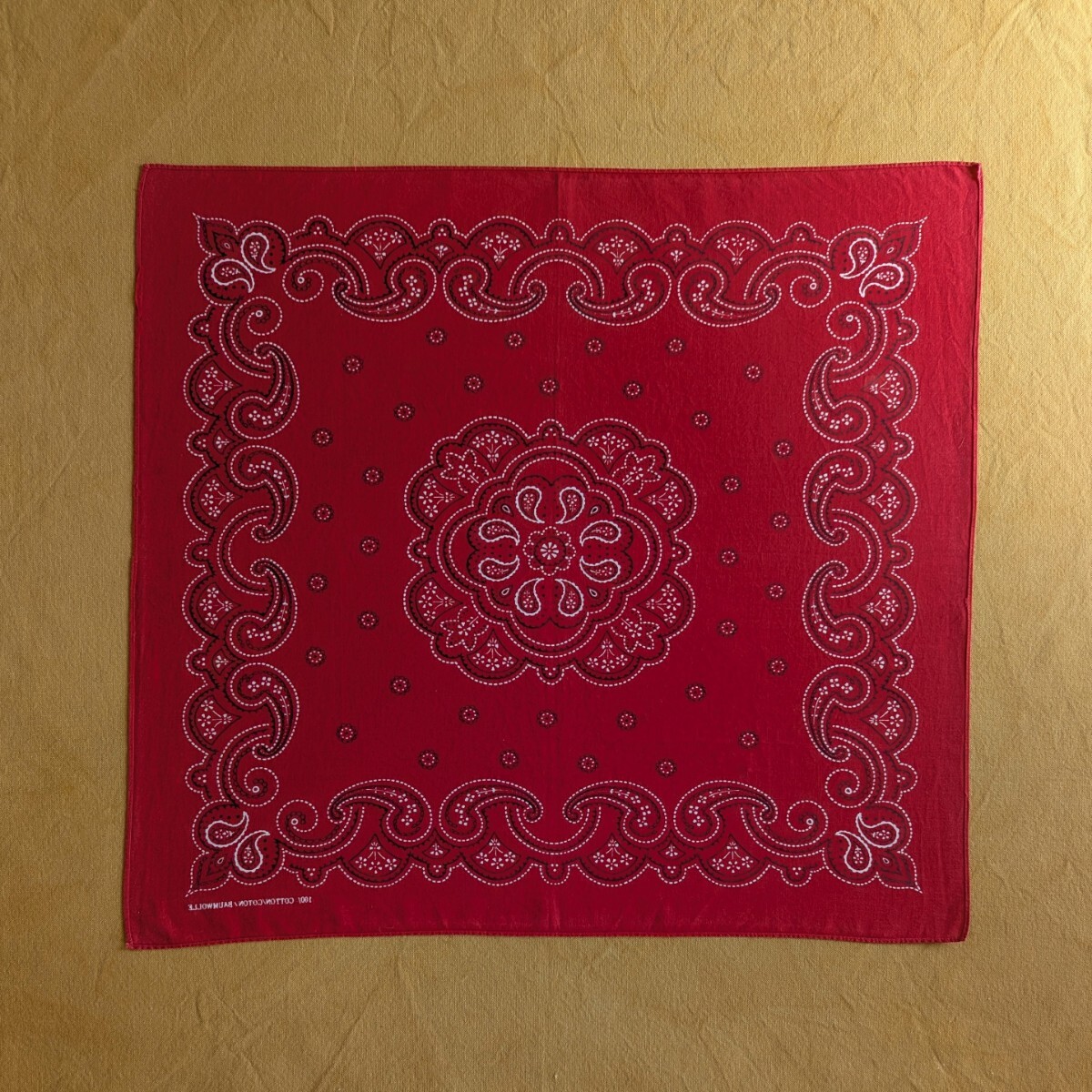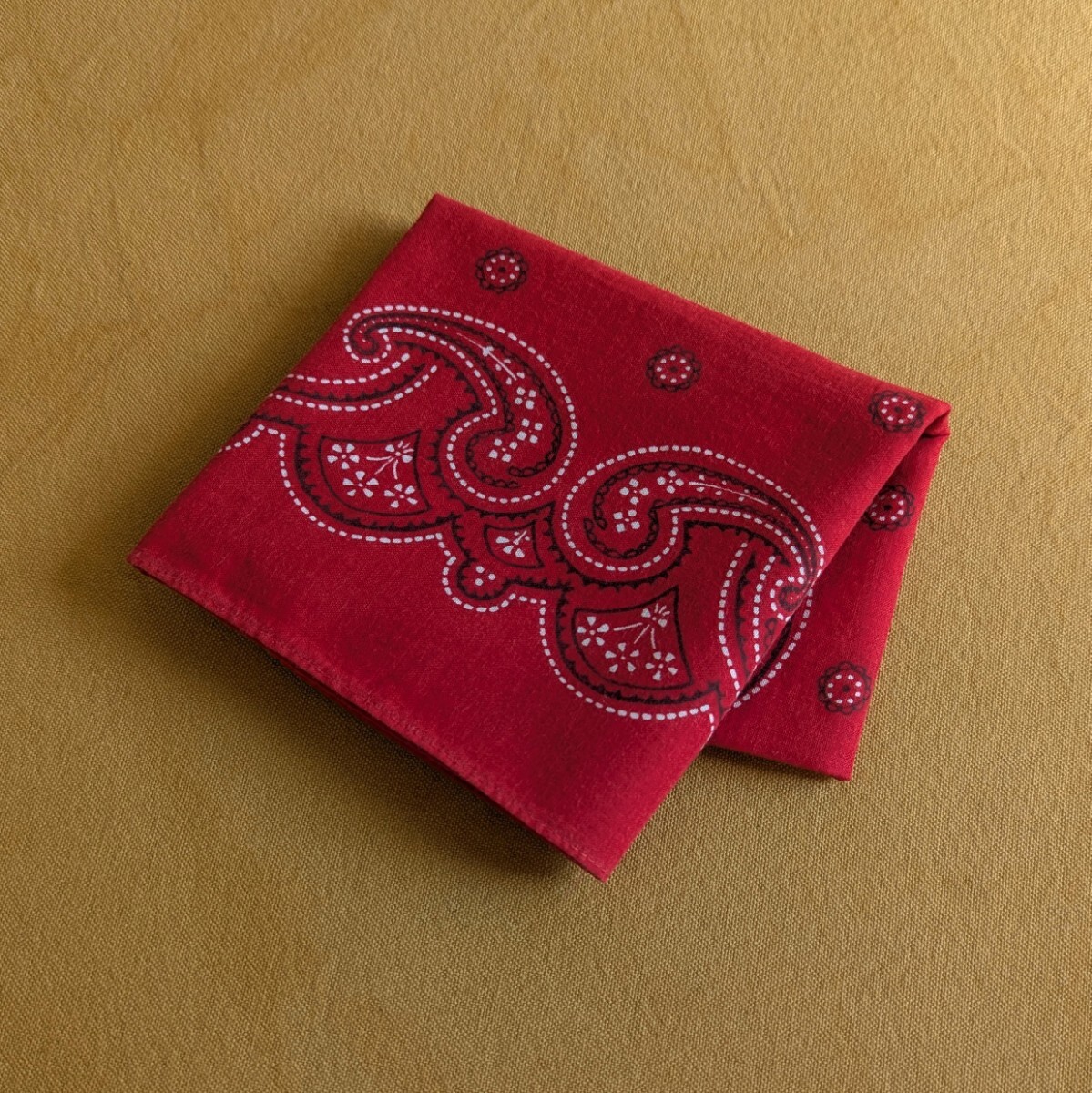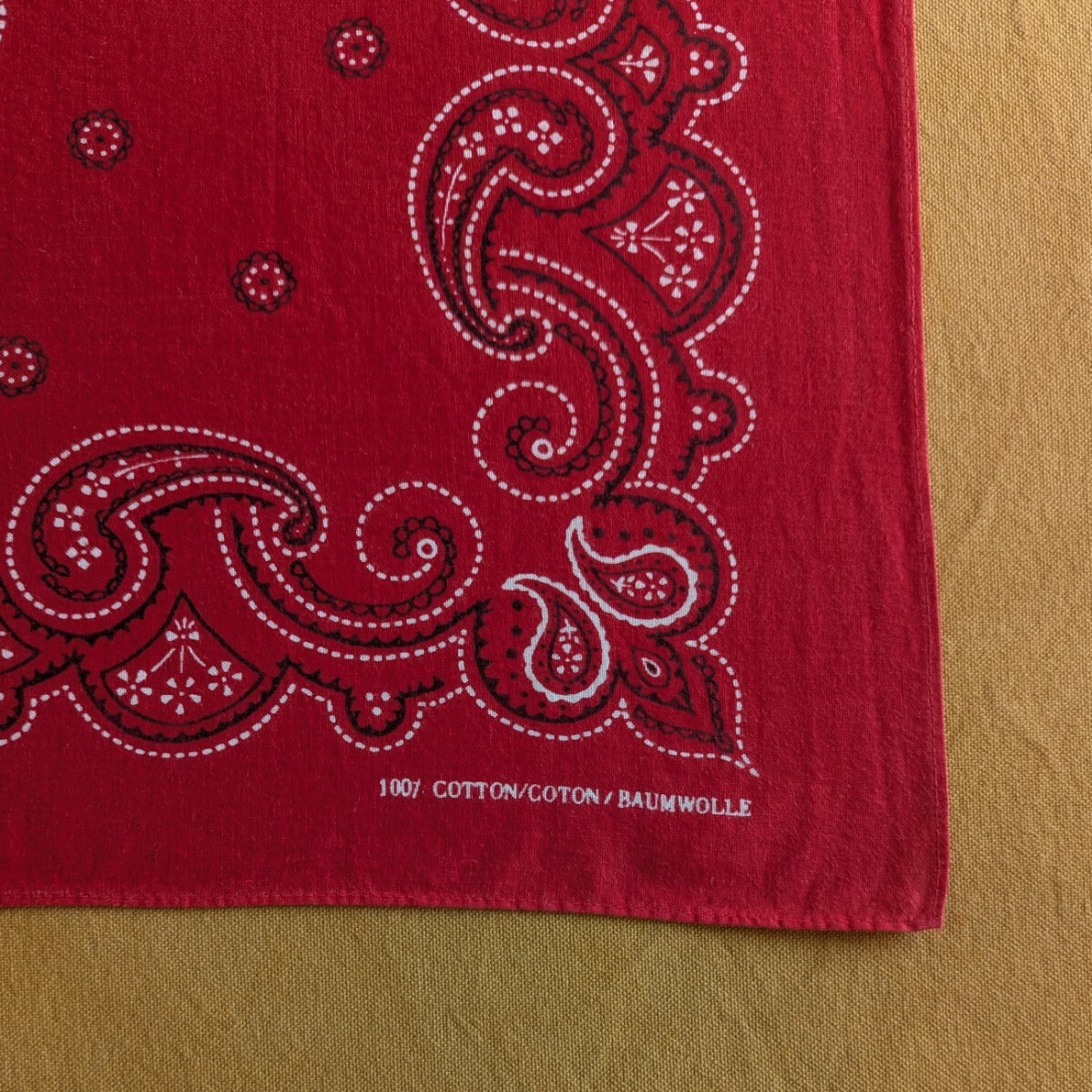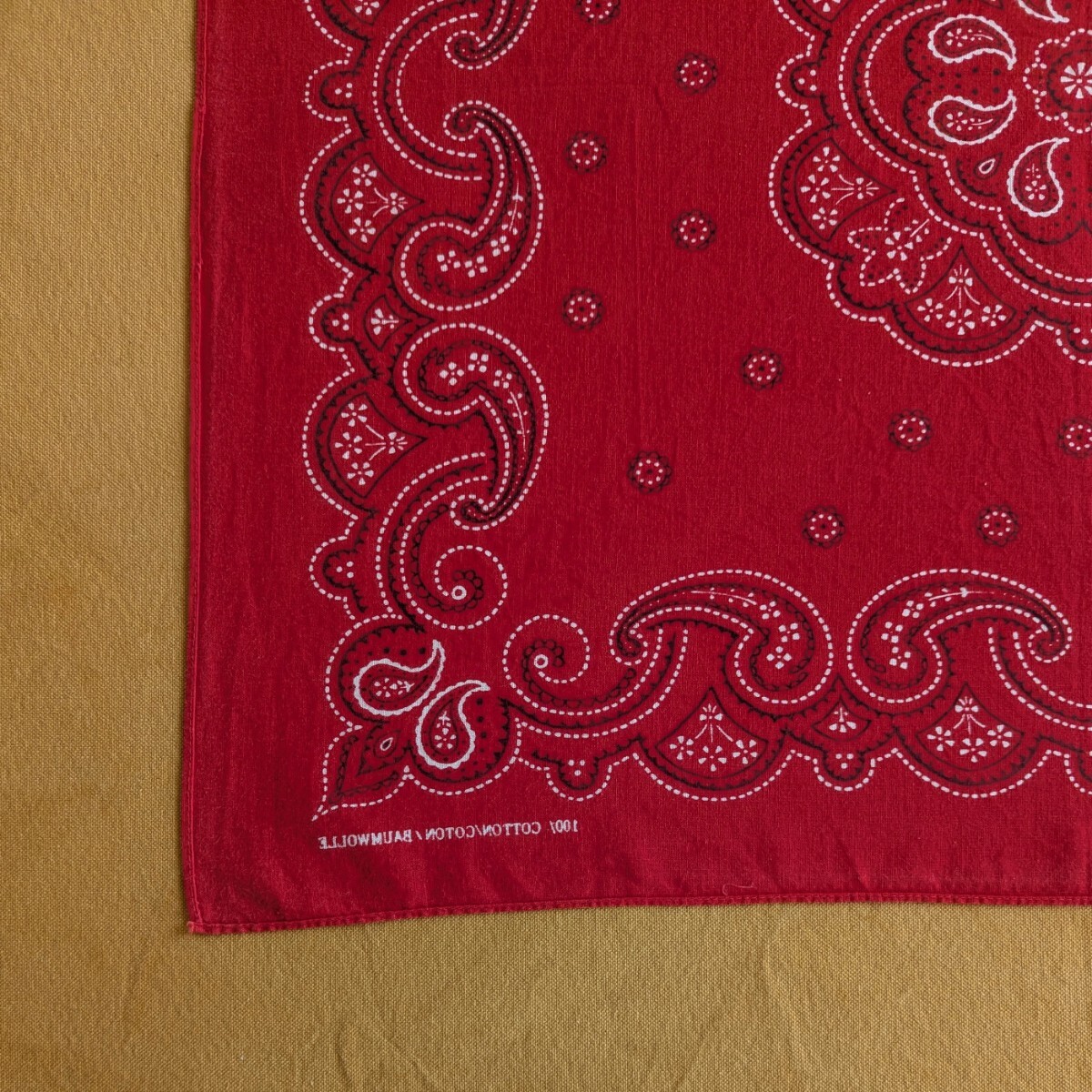 70's 80's ヴィンテージ バンダナ ハンカチ 花 ペイズリー 赤 100%COTTON 綿 BAUMWOLLE 47cm×52cm ユーロ ヨーロッパ 生地 古着 used